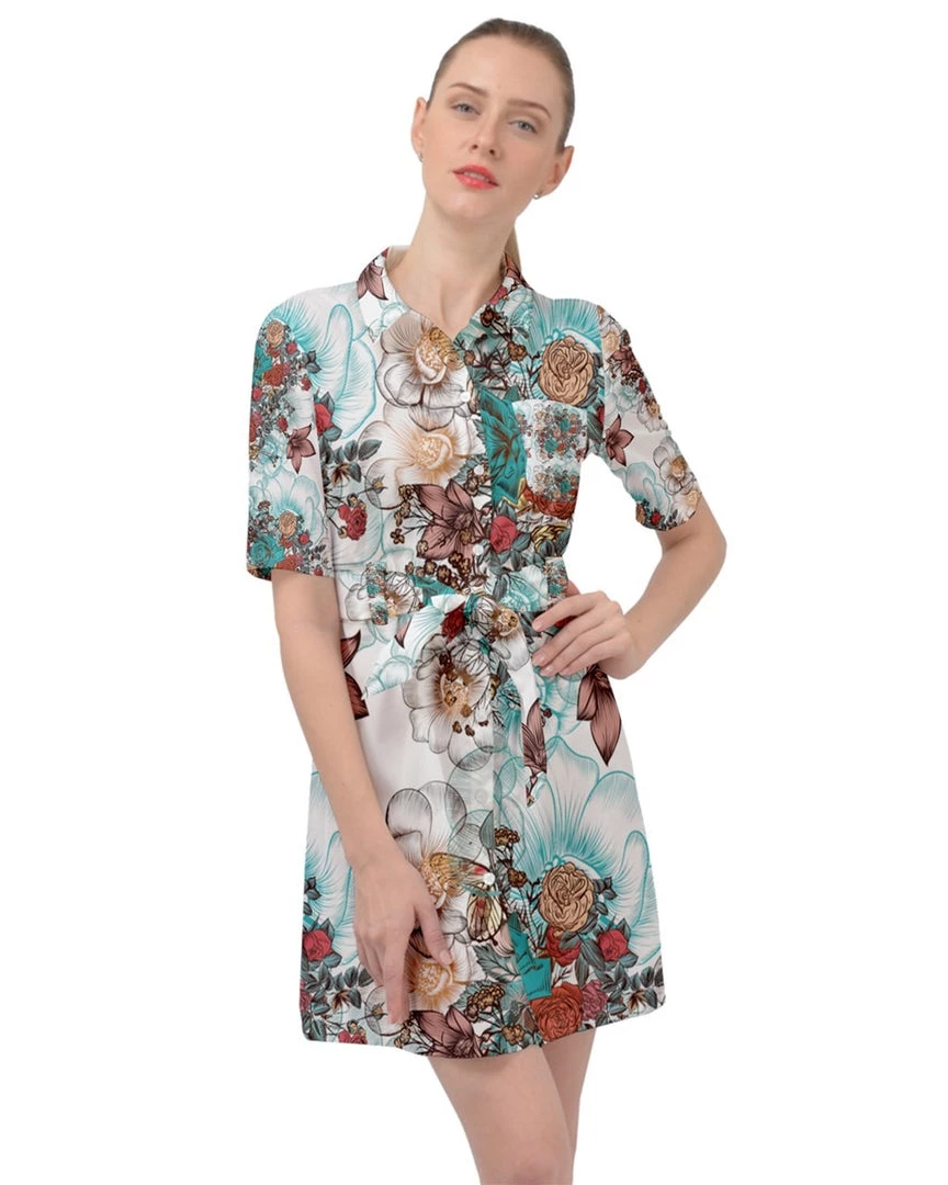 Wear this with or without the belt for your desired look. Features an all over vintage floral look with butterflies.