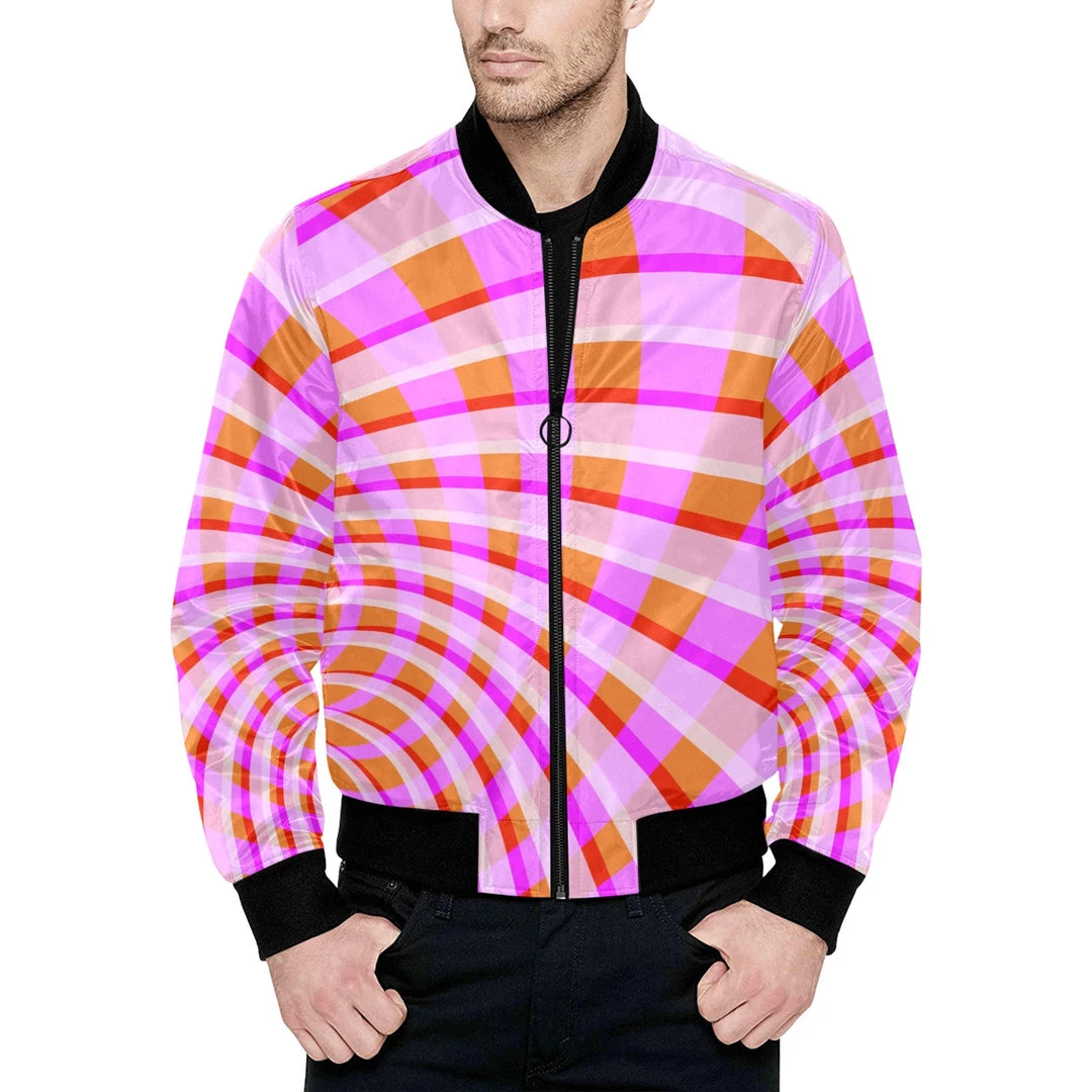 Our Violet Orbital Quilted Bomber Jacket is not for introverts. Featuring an all over abstract orbital print it provides a fashionable boost to any outfit. Pair with jeans or pants for the ultimate color pop. The black quilted interior lining provides warmth and a luxurious touch.