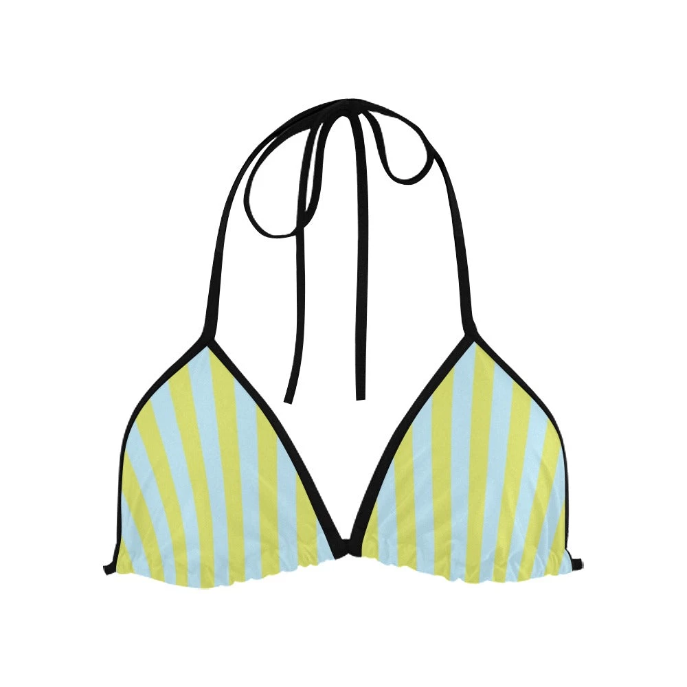 Our Blue Lime Stripes Bikini Top features a simple striped look in contemporary colors. This model comes with black tie up straps. Please refer to the size chart for the perfect fit in both EU and US sizes ranging from S through to 5XL.