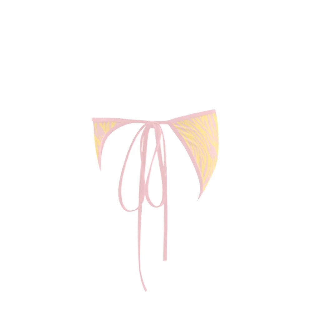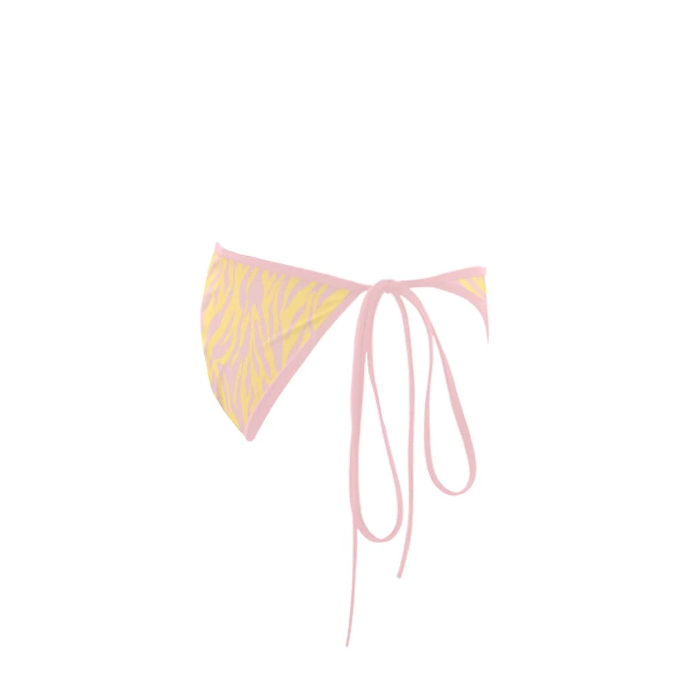 Our Dust Storm Zebra Bikini Bottoms features an all over zebra print in soft yellow and dusty pink. A unique swimsuit with an all over animal print. This model comes with pink tie up straps. Please refer to the size chart for the perfect fit in both EU and US sizes ranging from S through to 5XL.