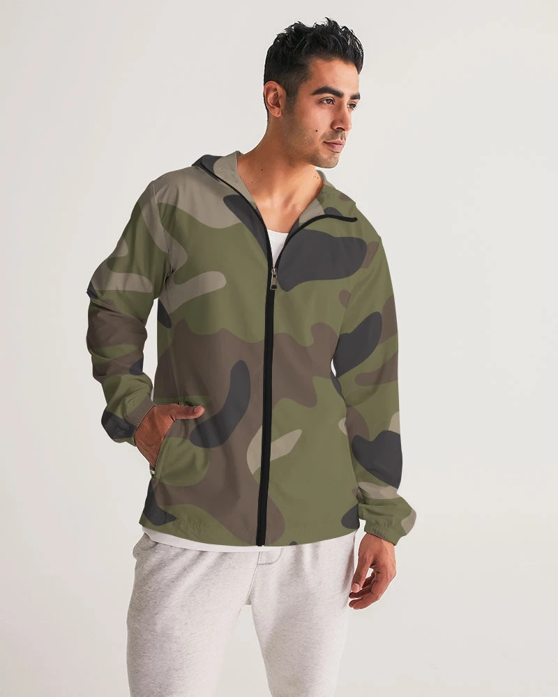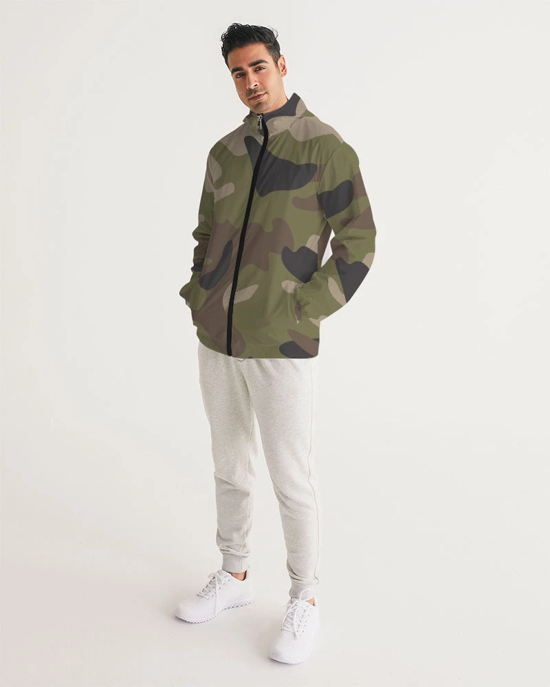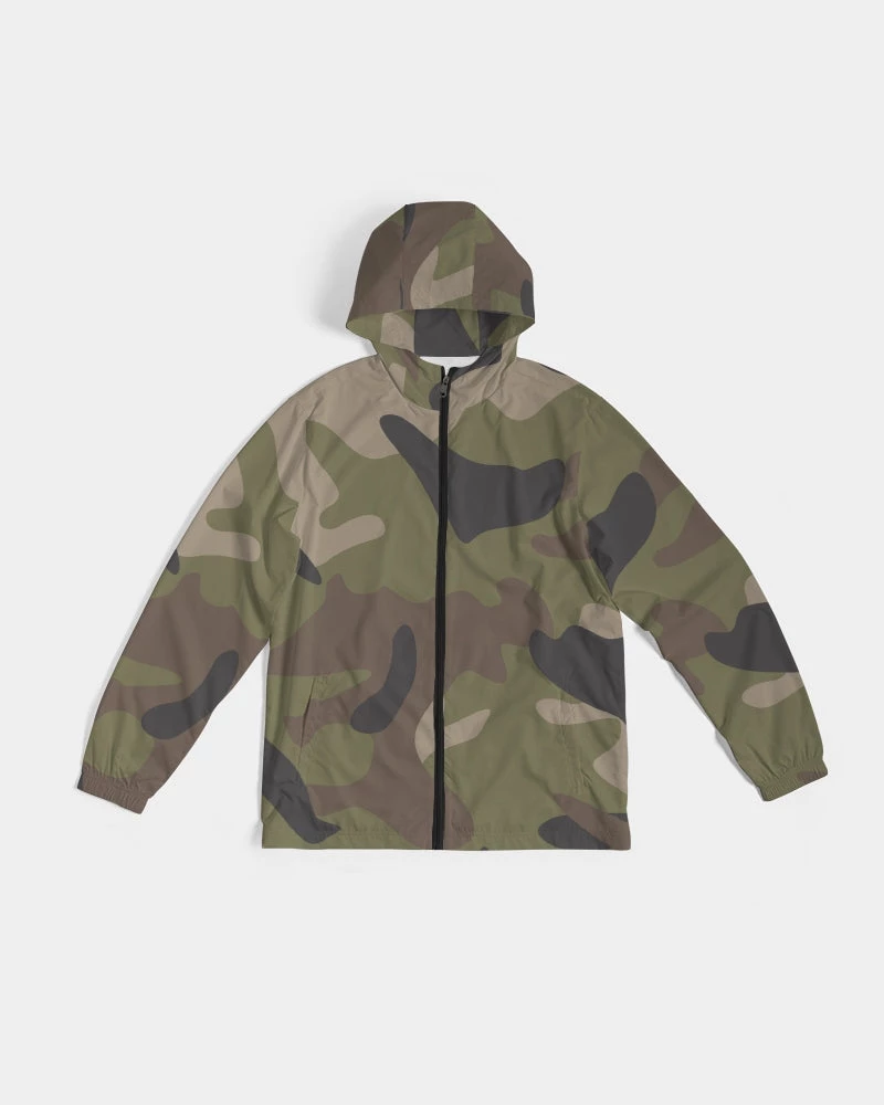 | Our Woodland Camo Men’s Windbreaker Jacket offers great protection from the elements. Handmade with lightweight, water-resistant fabric, and full mesh lining that can layer easily over a Tee or Tank. Extremely versatile with jeans, joggers or pants.