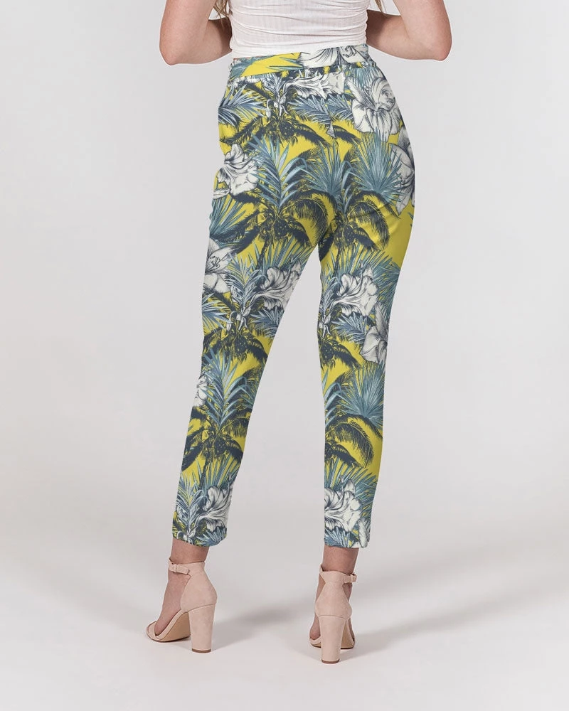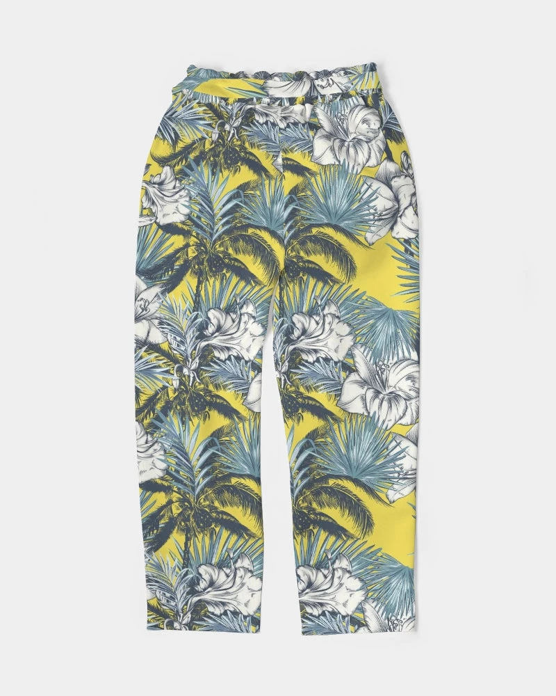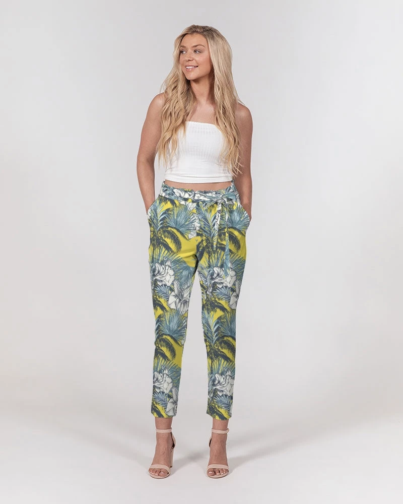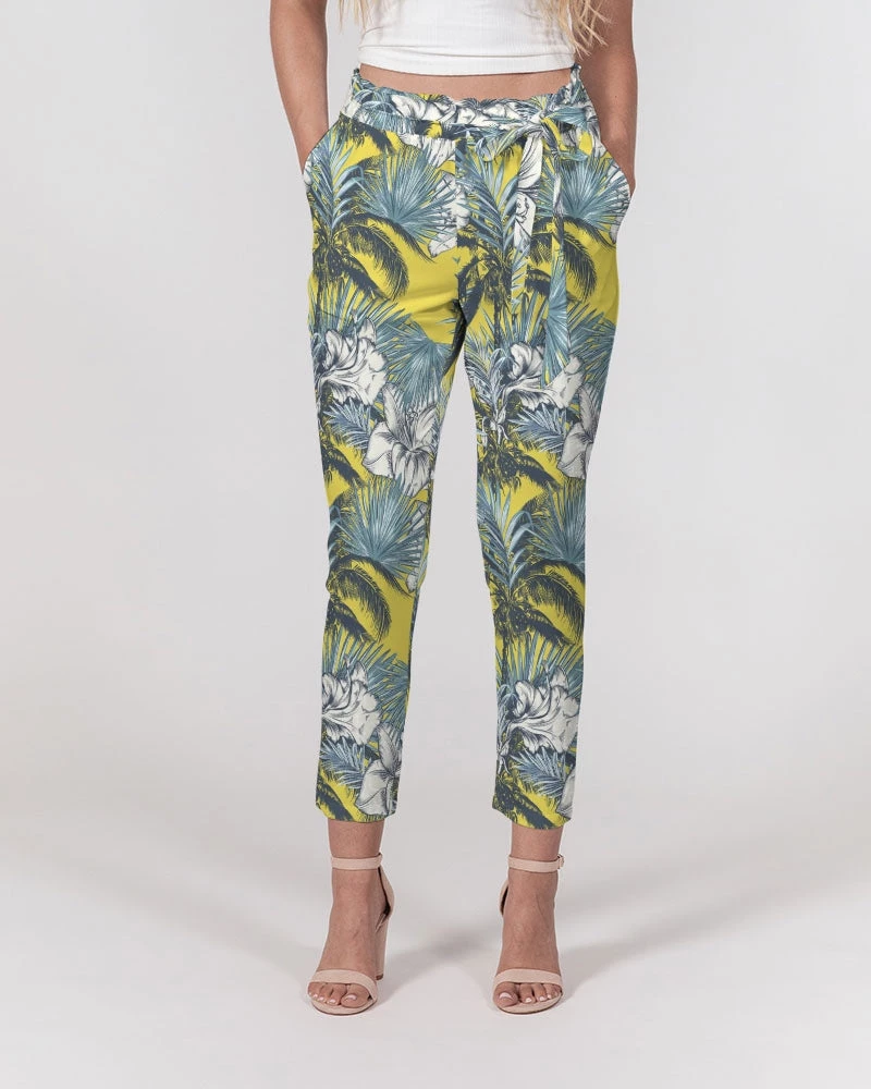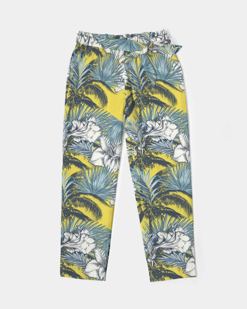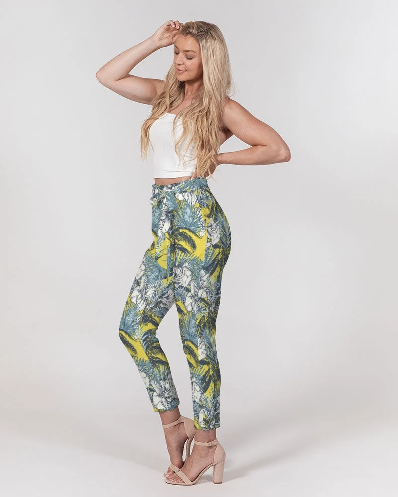 | Designed to sculpt your figure in all the right places, our Yellow Tropics Women’s Belted Tapered Pants are comfortable and effortless. With an all over palm and floral print they add color and style to any outfit. Made from smooth chiffon with moderate stretch and finished with a high-rise waist and tapered cut.