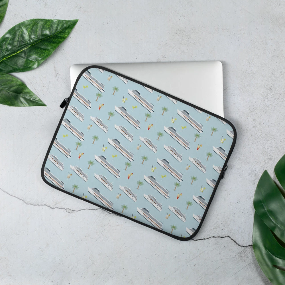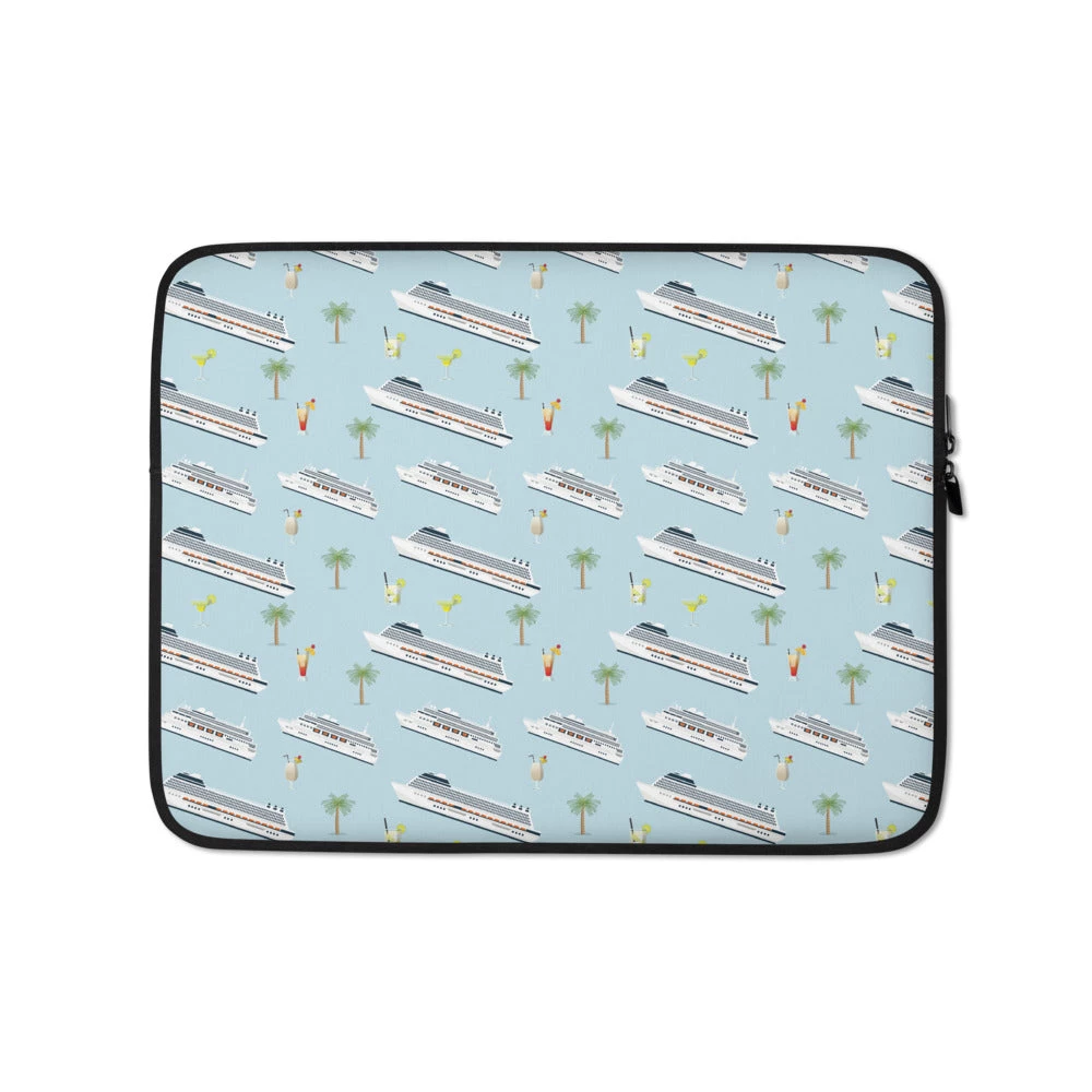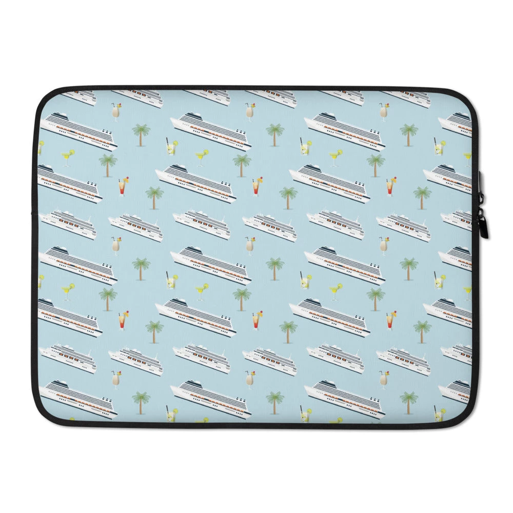 Our Cruise Lover’s Laptop Sleeve is a popular accessory for avid Cruisers. With cute diagonal ships and tropical cocktails and palm trees it’s ooses summer vibes and good times.
