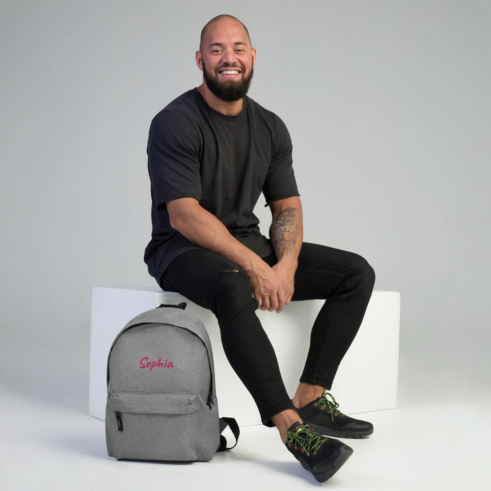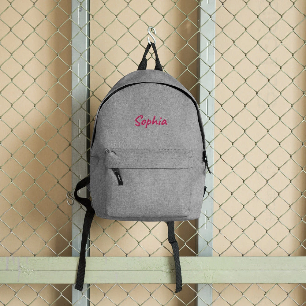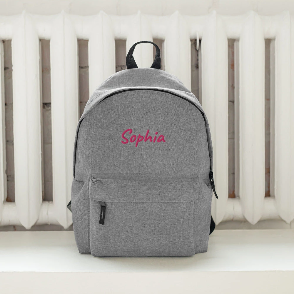 This contemporary designed backpack can be personalized with your own name, initials or your choice of text. Choose from a variety of embroidery colors.