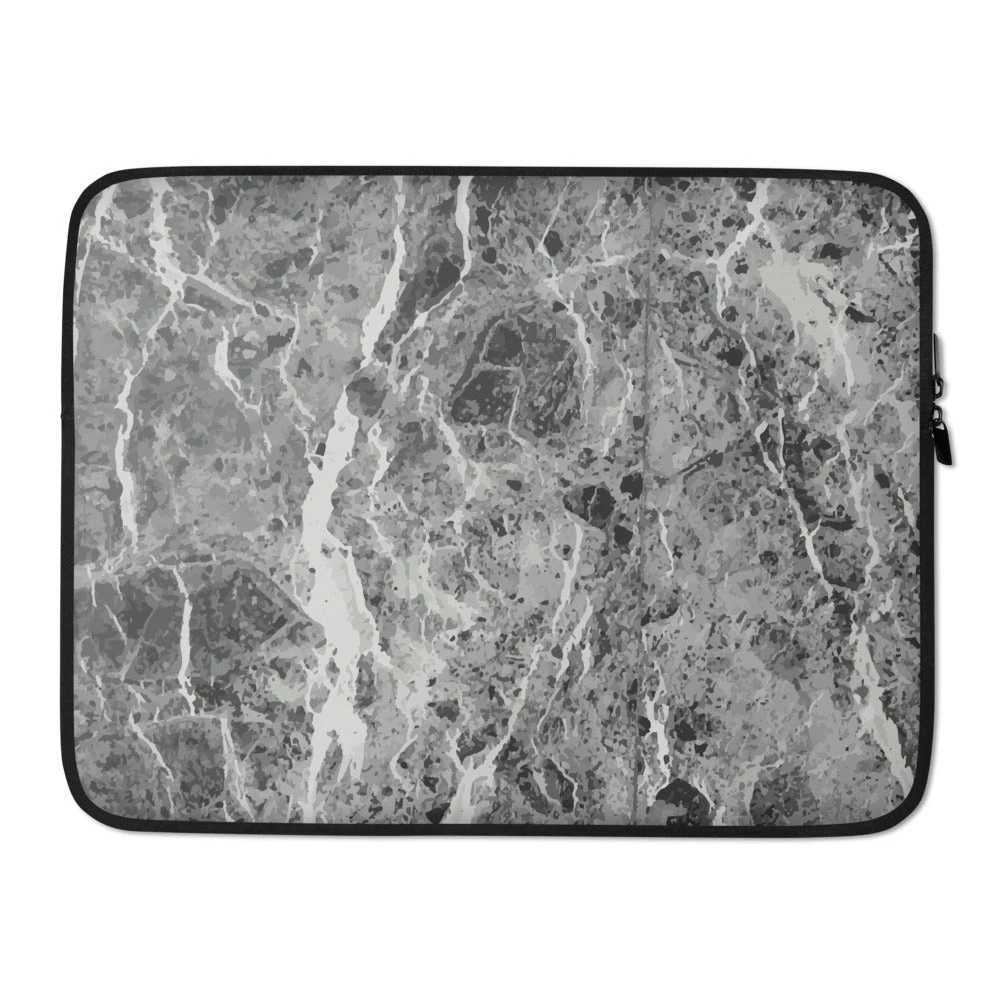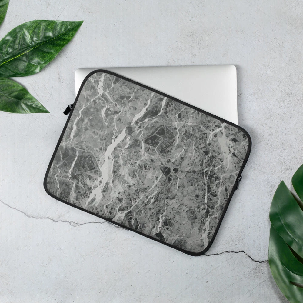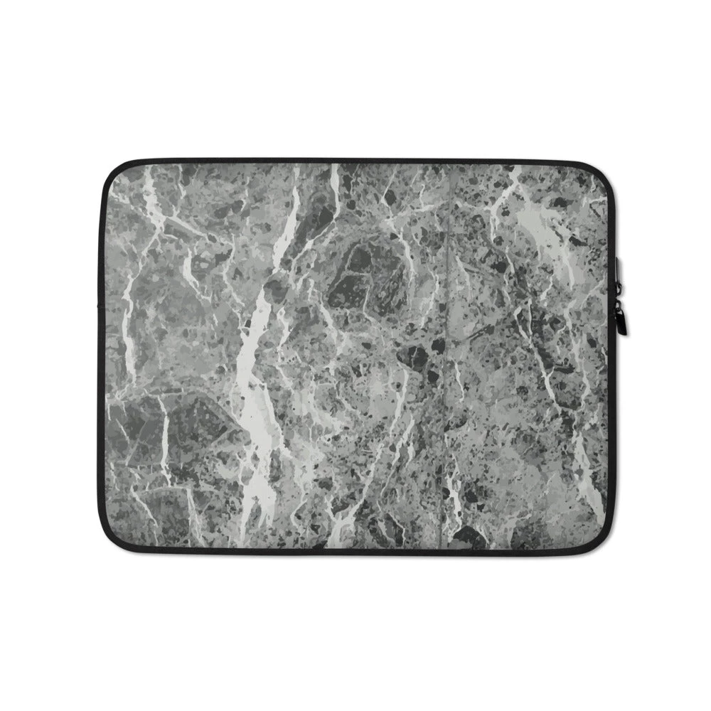 Personalize this contemporary designed dark grey marble laptop sleeve with your initials, name, business name or text.