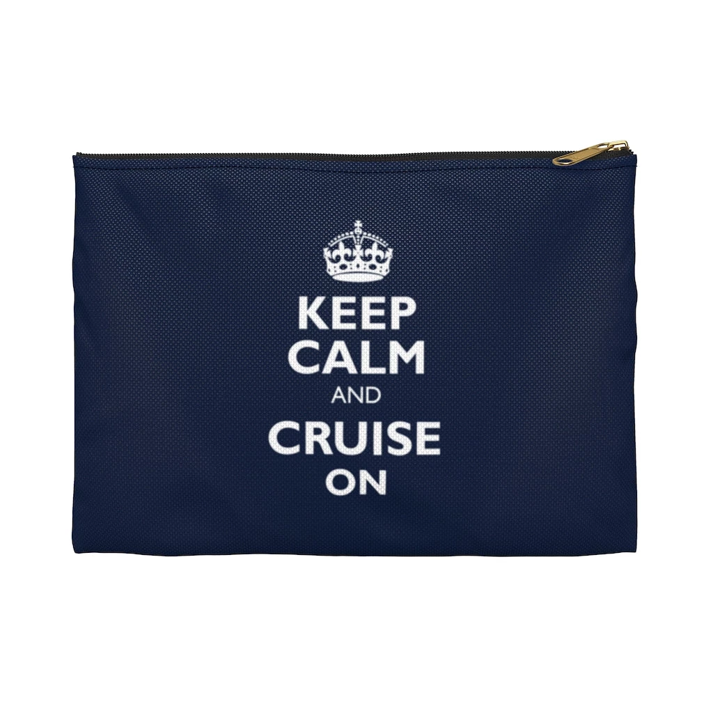 Our Keep Calm & Cruise on Accessory pouch is perfect for any occasion. Use as a clutch, purse, cosmetics case or travel bag for holidays, work / school. Perfect for carrying cash, your phone, pens and pencils or passport.