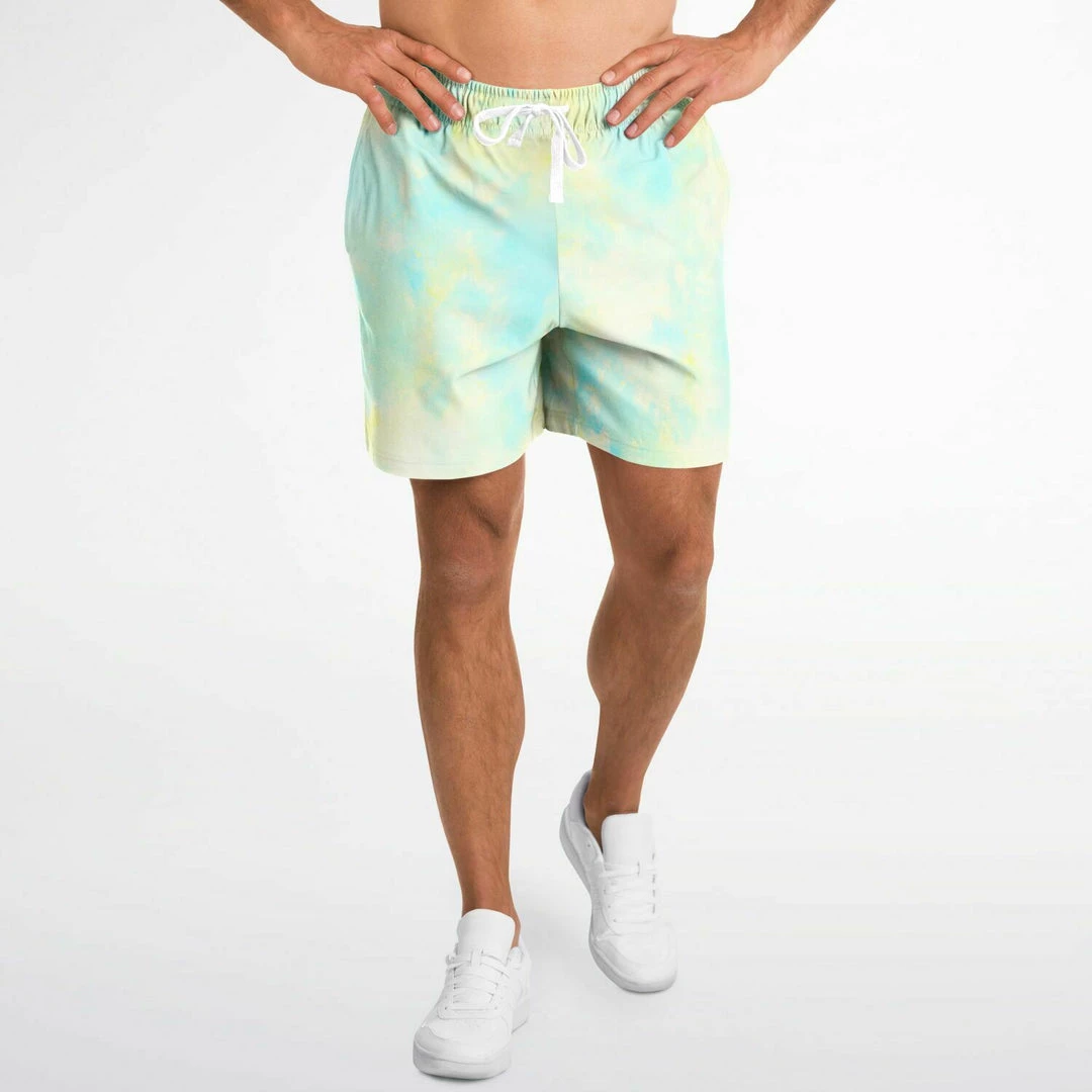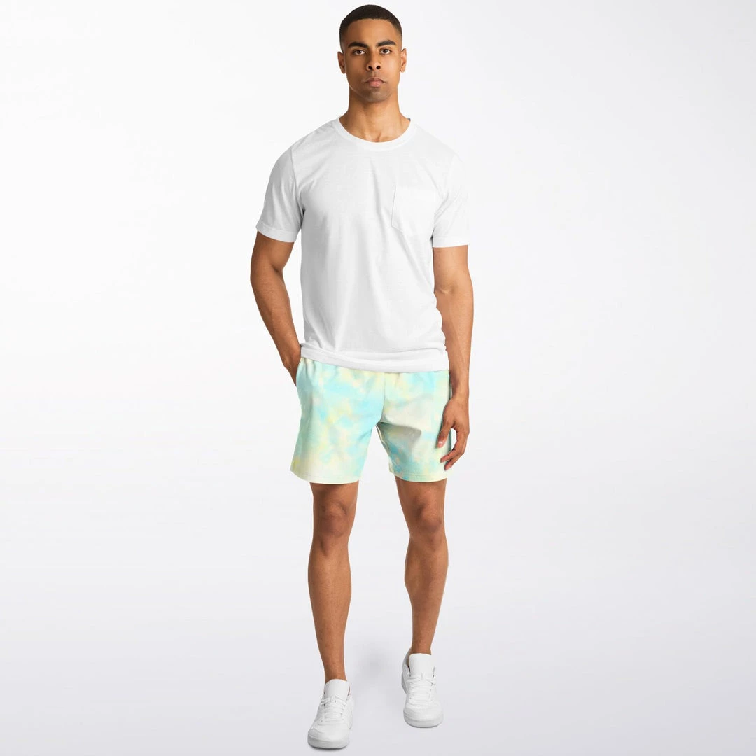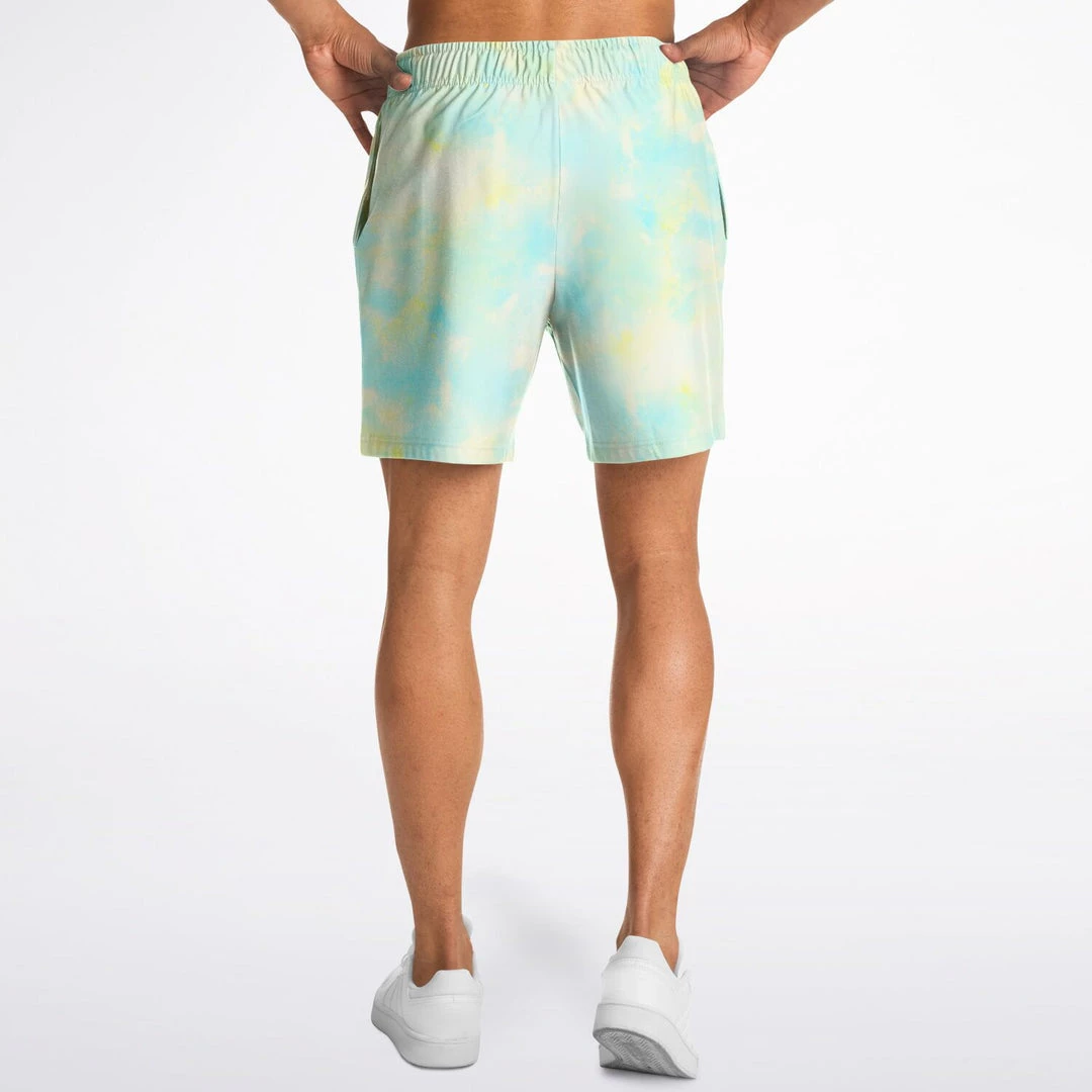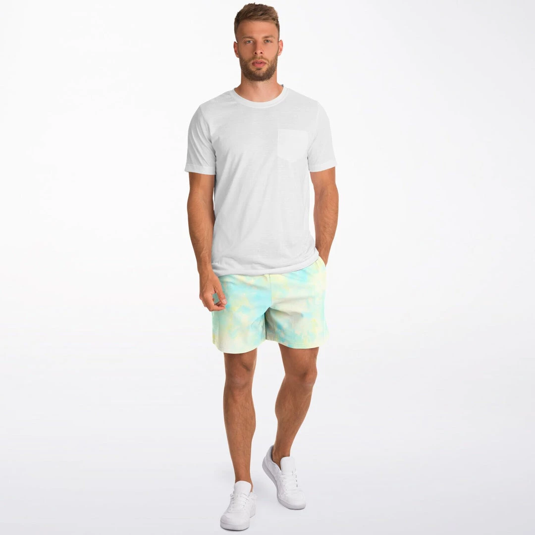 Our Blue Lemon Tie Dye Fleece Shorts provide a colorful lift to your outfit. The all over tie dye print in blue and yellow lemon is modern and contemporary.
