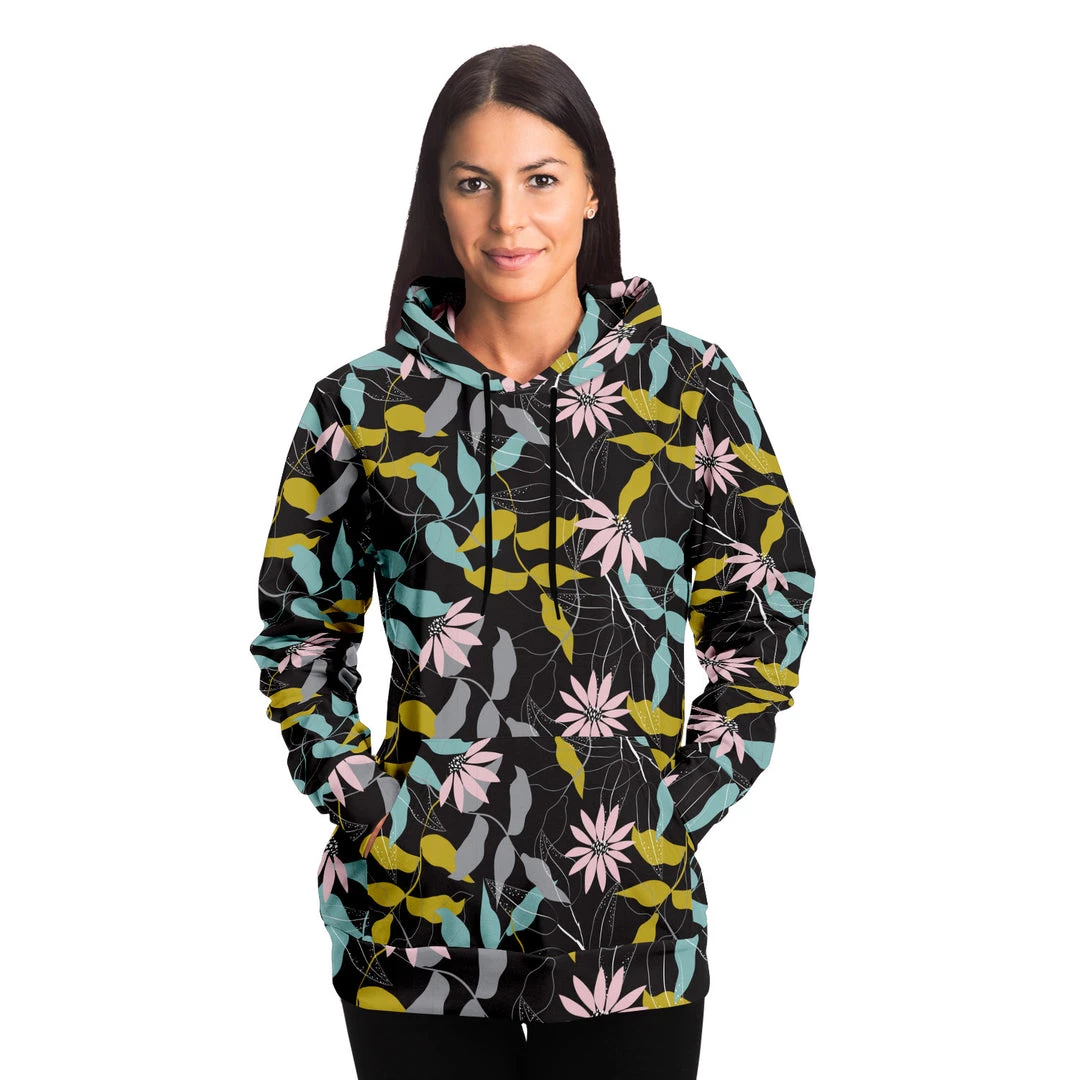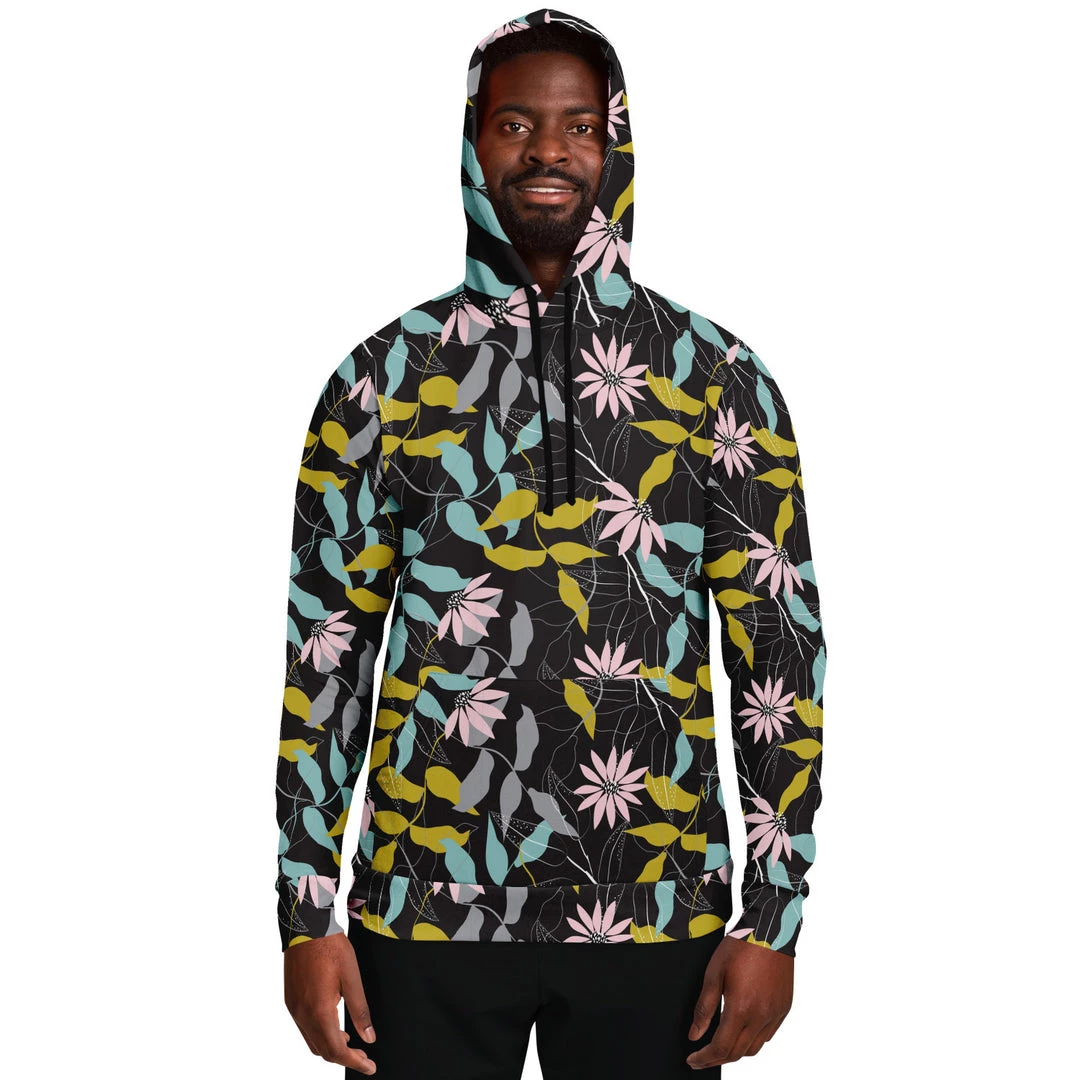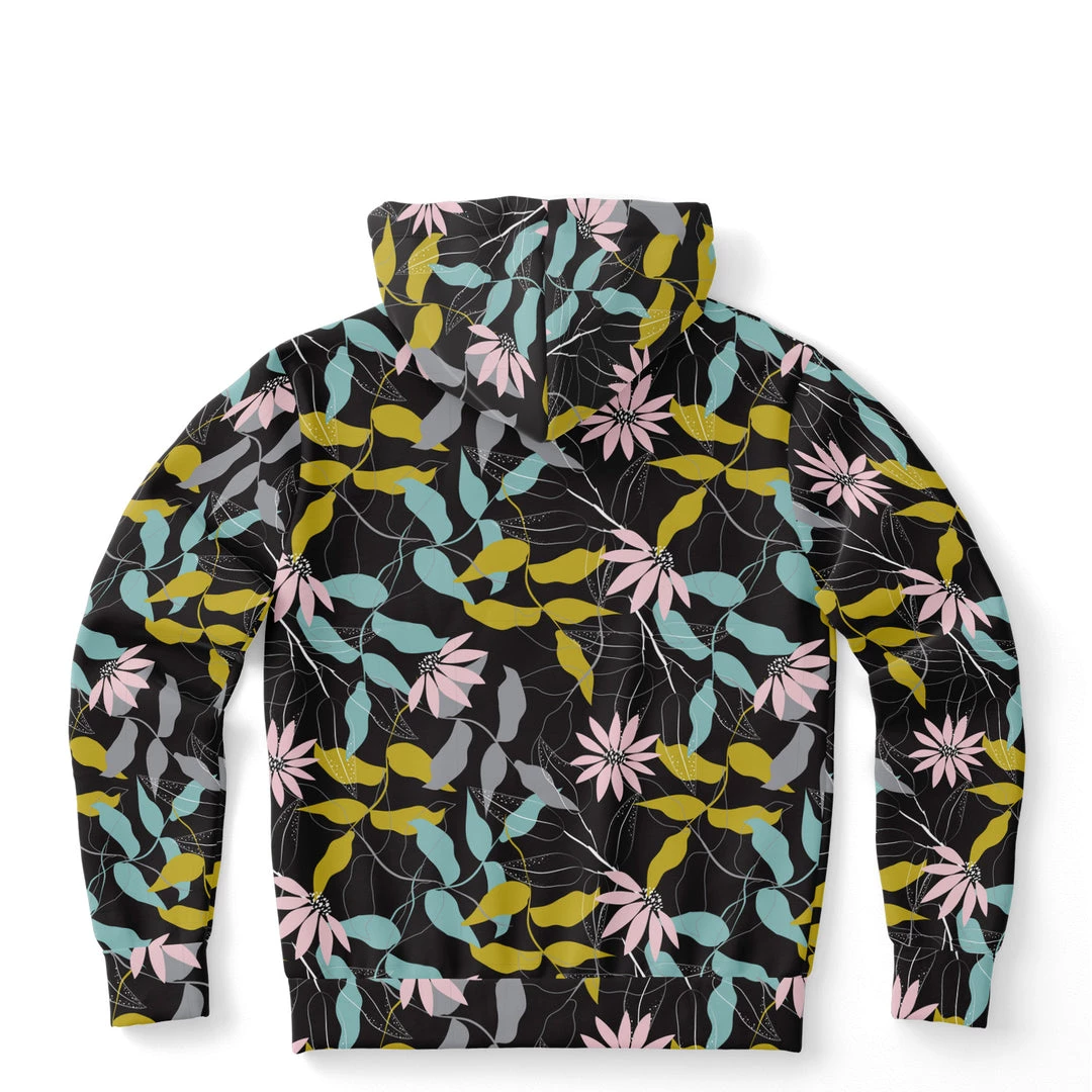 Our Evening Floral unisex hoodie features a soft and durable fabric that has a cotton feel to it. The brushed fleece on the inside will make this your most comfy hoodie ever! Each panel is individually printed, cut and sewn to ensure a flawless graphic with no imperfections.