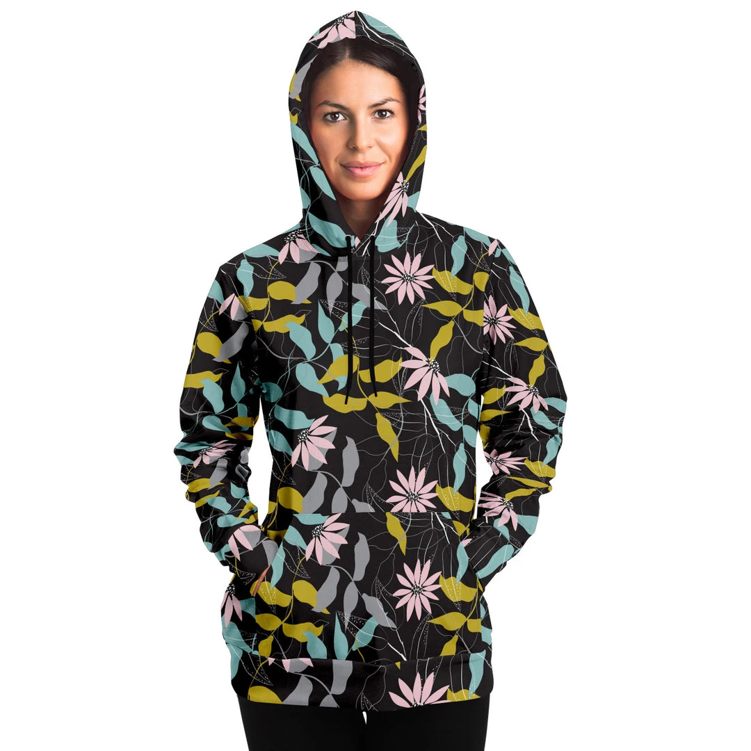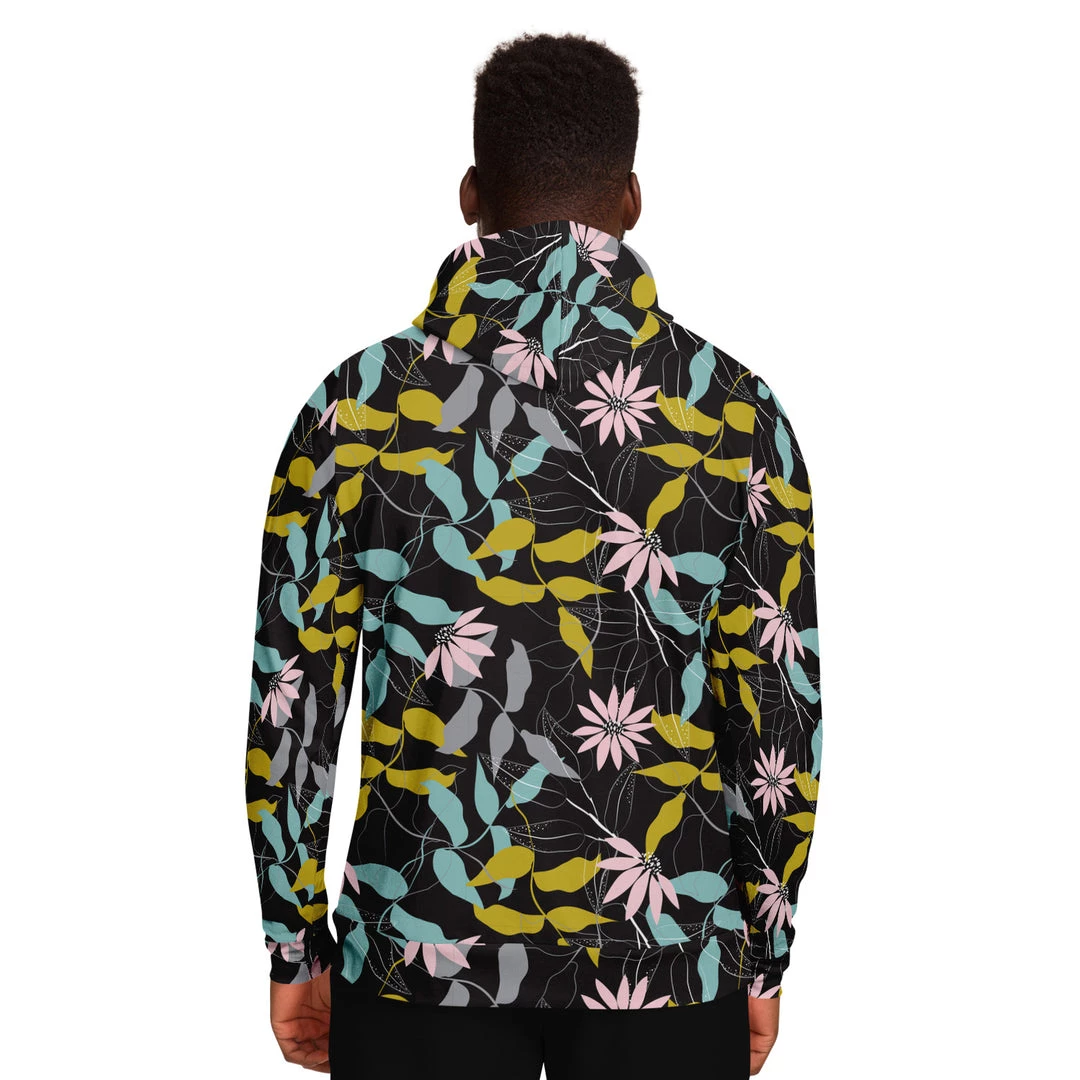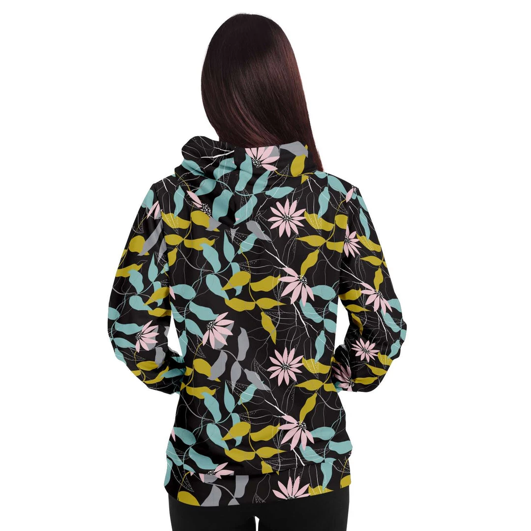 Our Evening Floral unisex hoodie features a soft and durable fabric that has a cotton feel to it. The brushed fleece on the inside will make this your most comfy hoodie ever! Each panel is individually printed, cut and sewn to ensure a flawless graphic with no imperfections.
