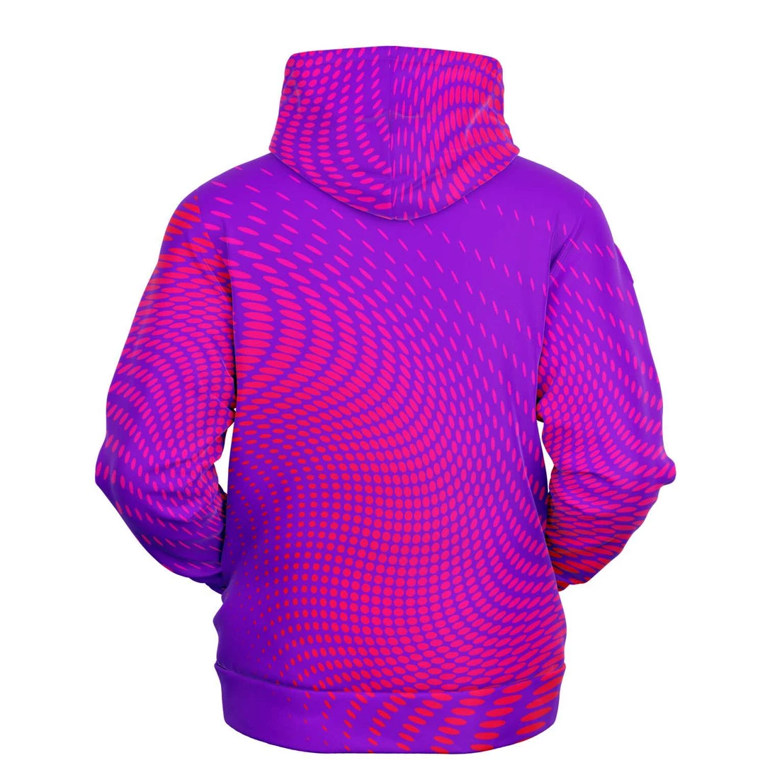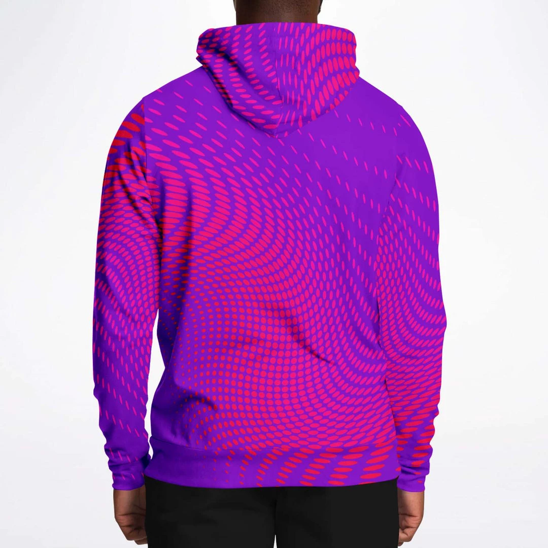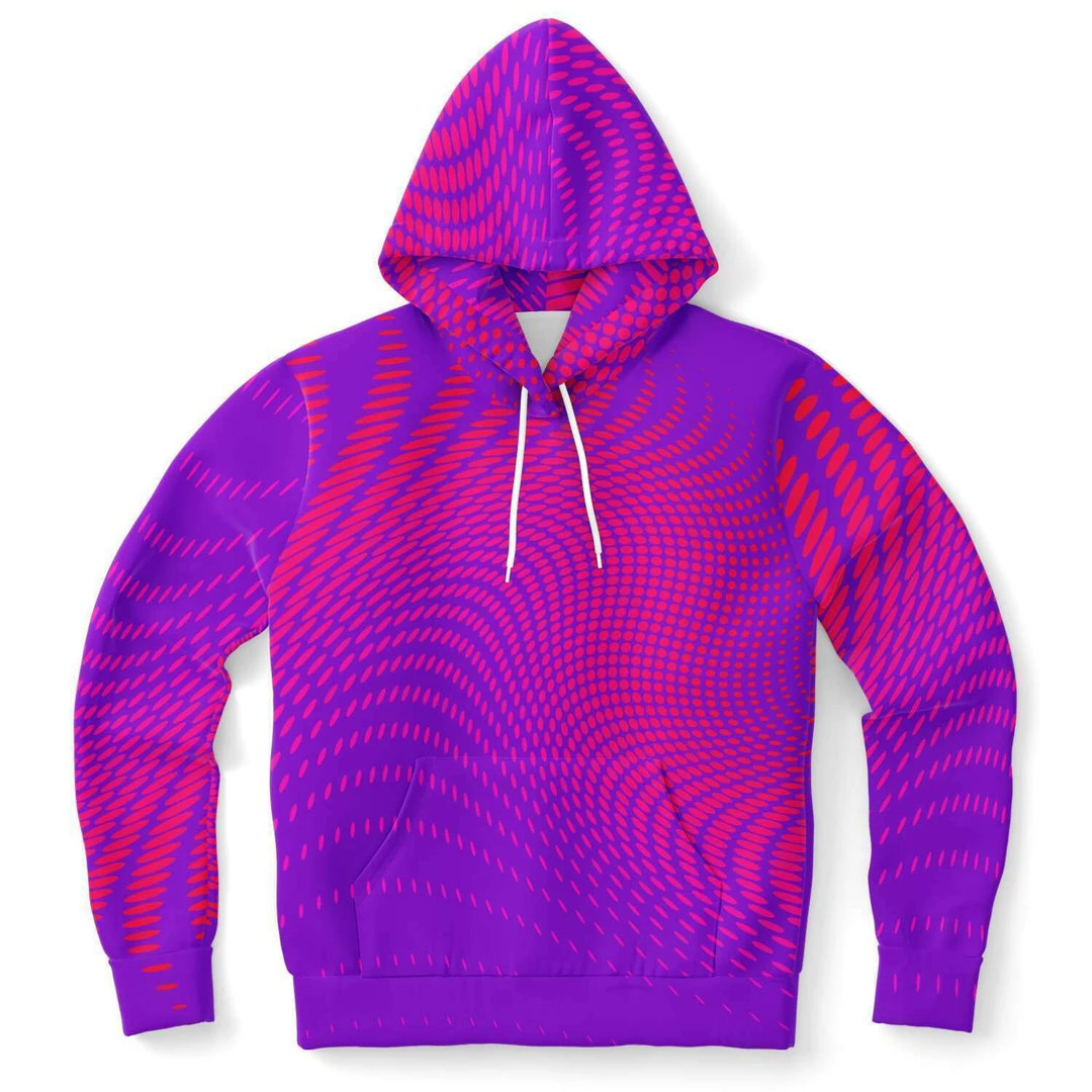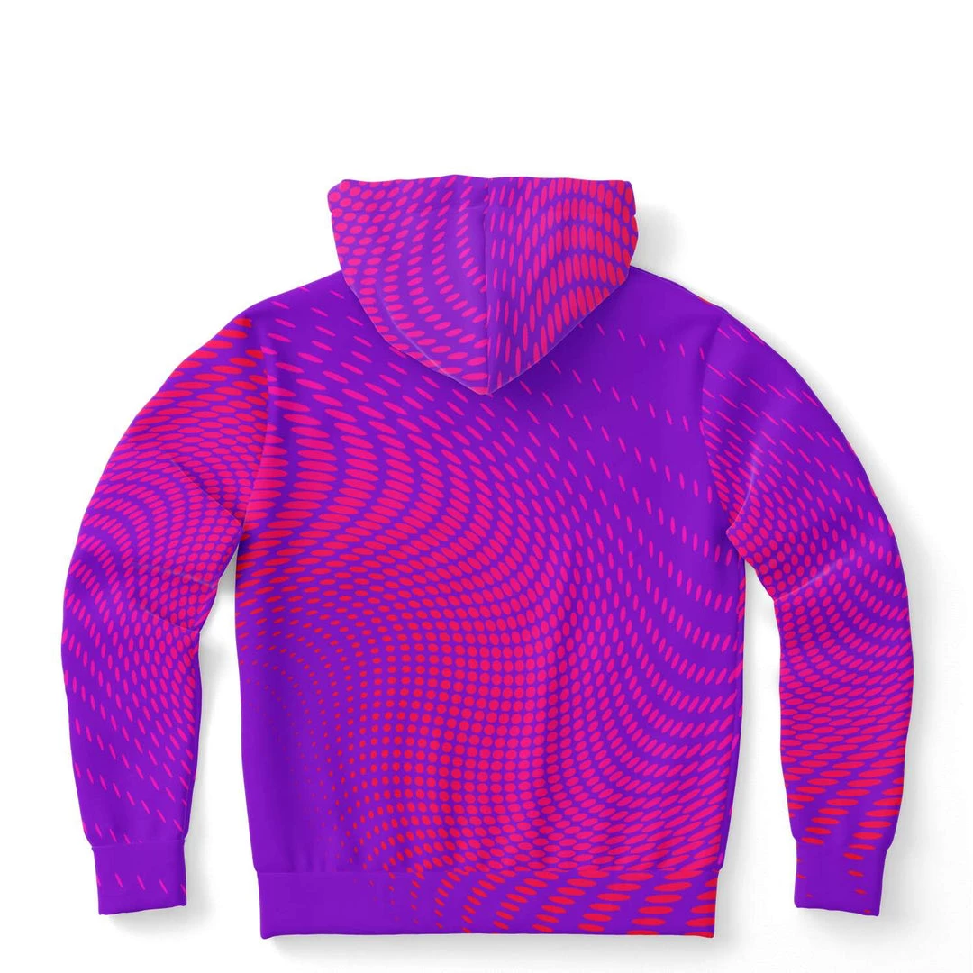 Our Wicked Purple Dots Unisex hoodie features a soft and durable fabric that has a cotton feel to it. The brushed fleece on the inside provides warmth and comfort for the cooler months.