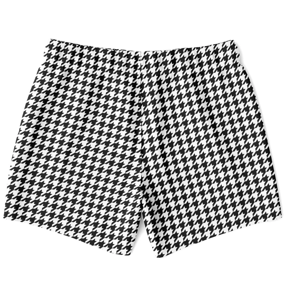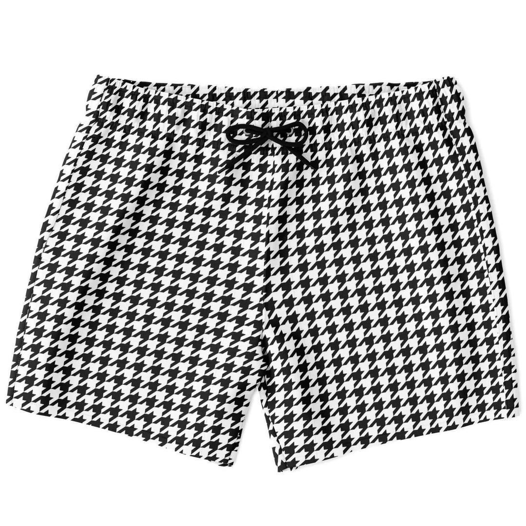 Our Houndstooth Check Swim Shorts ooze luxury with an all over black and white check pattern. These shorter-length swim trunks fit above the knee to show a bit of leg. They come in a fast-dry fabric, and feature a black drawstring waistband, mesh basket lining and mesh-lined side pockets.
