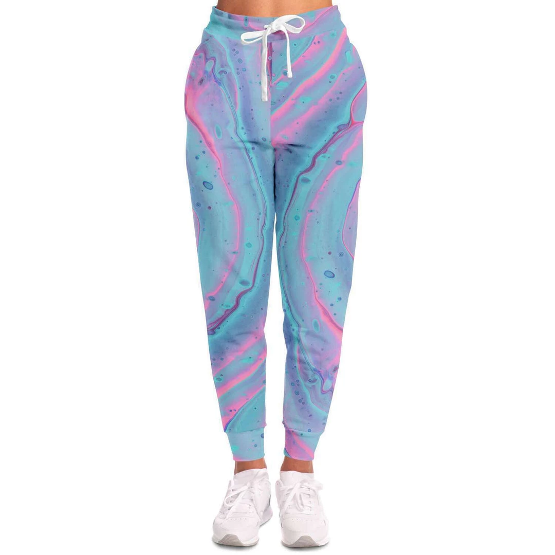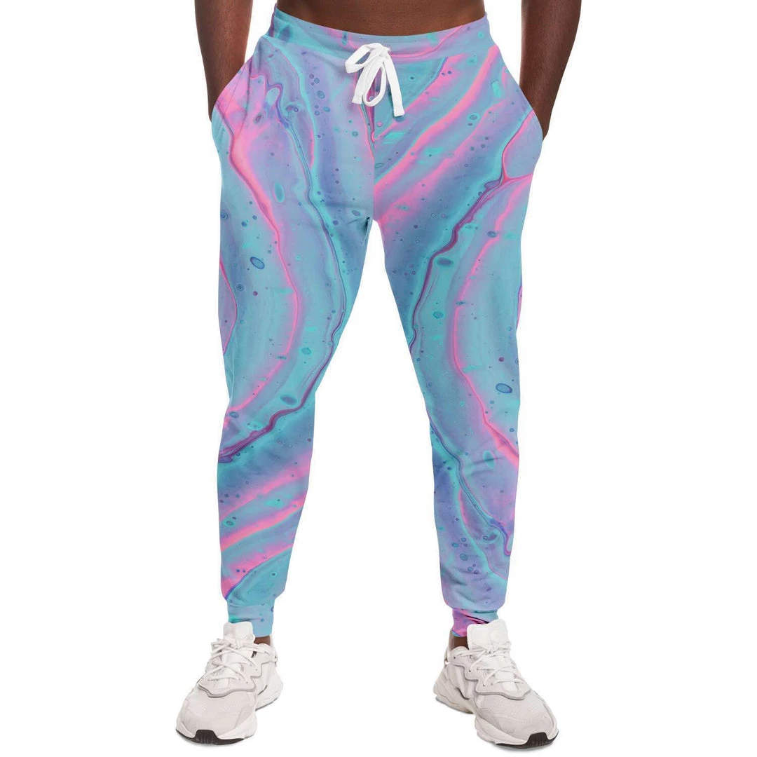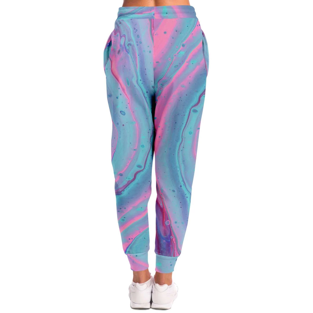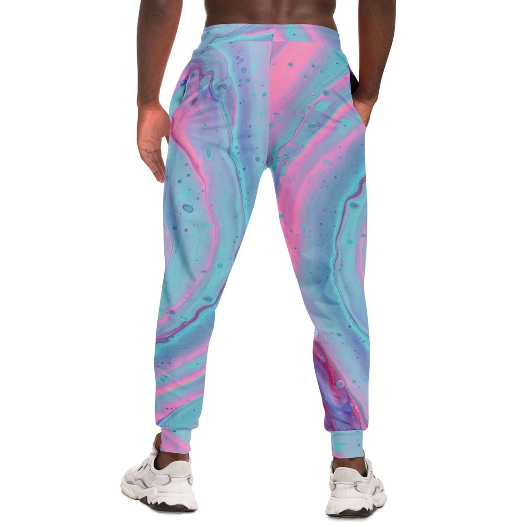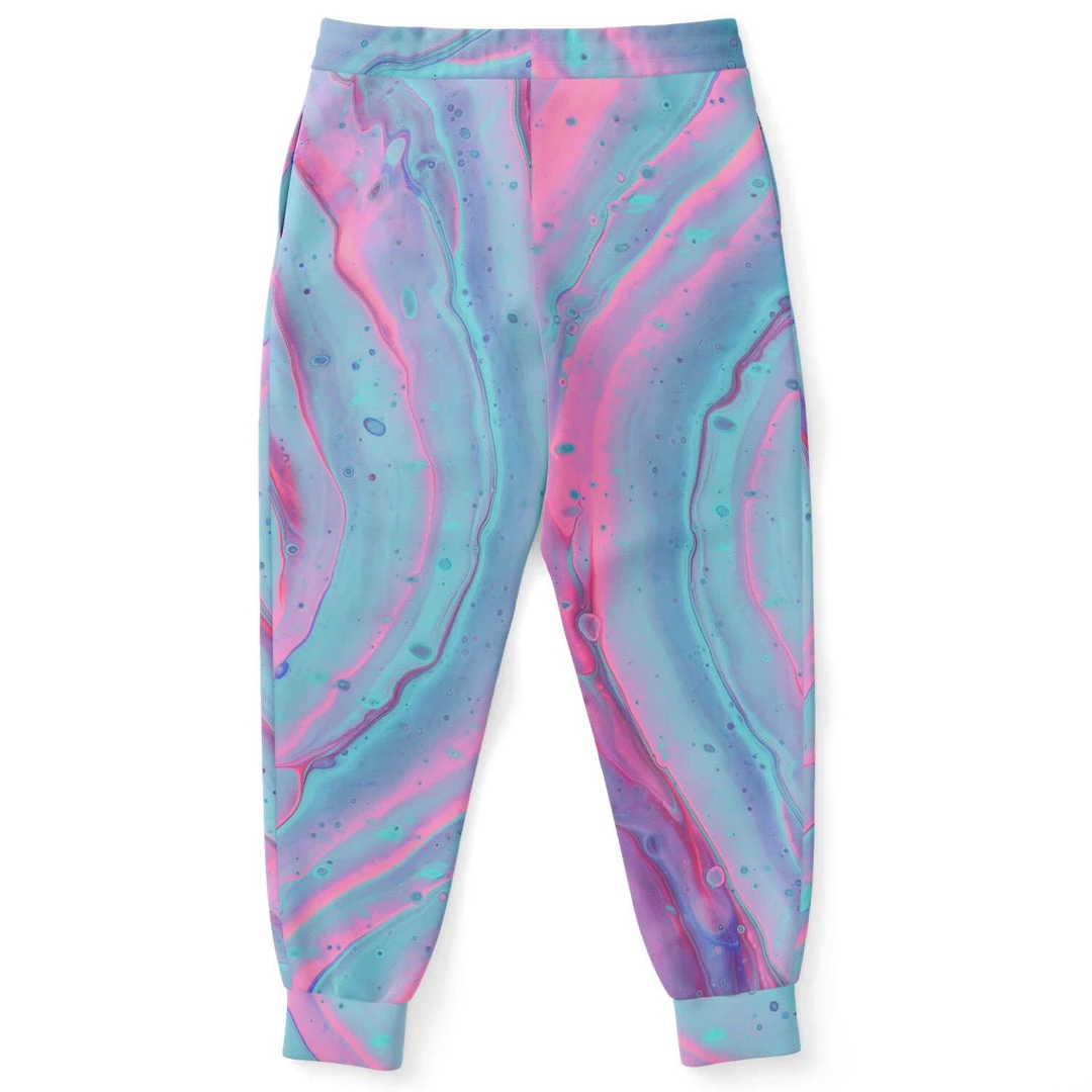 Our Marshmallow Marbled Unisex fleece joggers are one of a kind. The marbled print in blue and pink tones are totally unique. Pair them with a white tee, hoodie or sweatshirt for a great look. These unisex fleece joggers feature a soft and durable fabric that has a cotton feel, whilst the brushed fleece on the inside adds warmth and comfort.