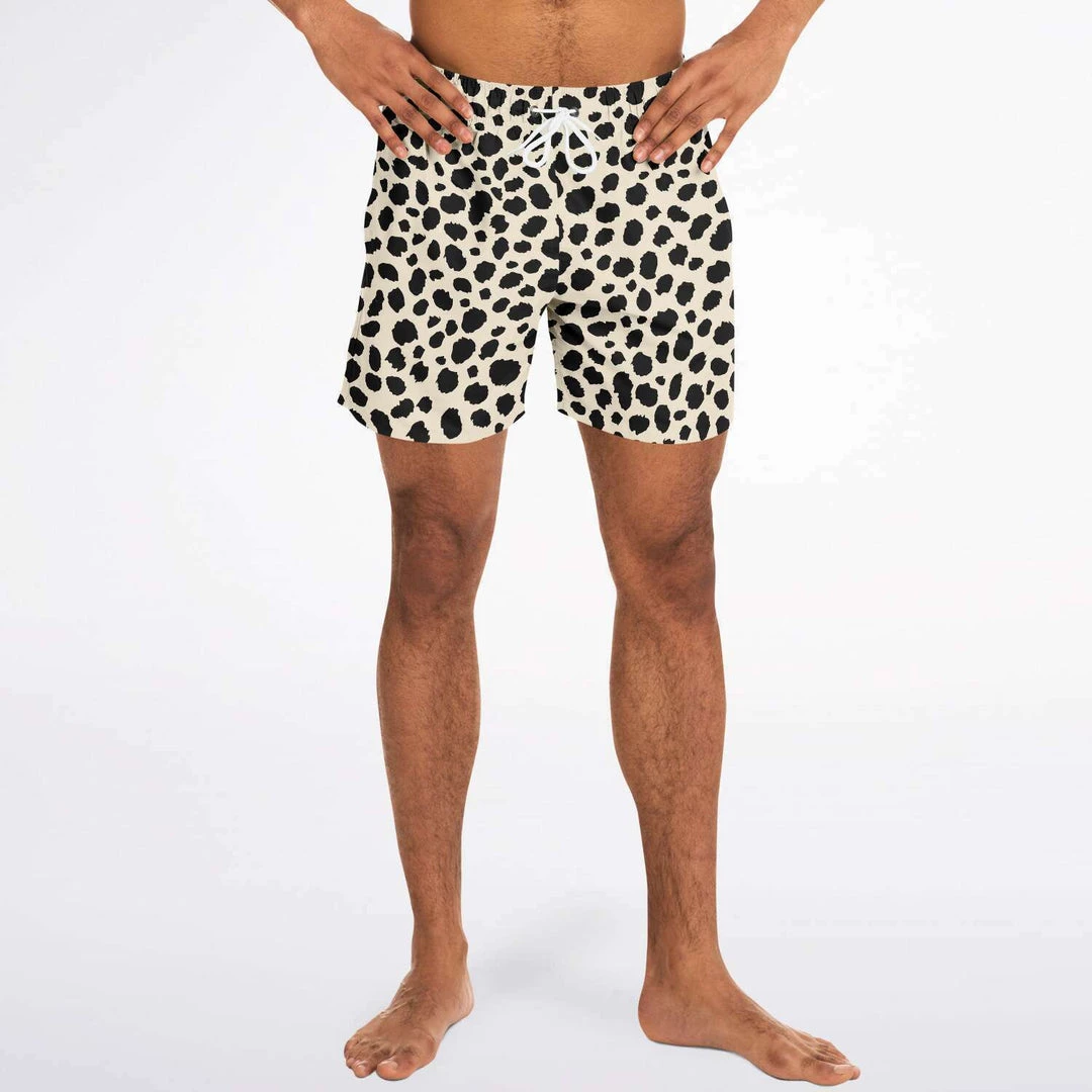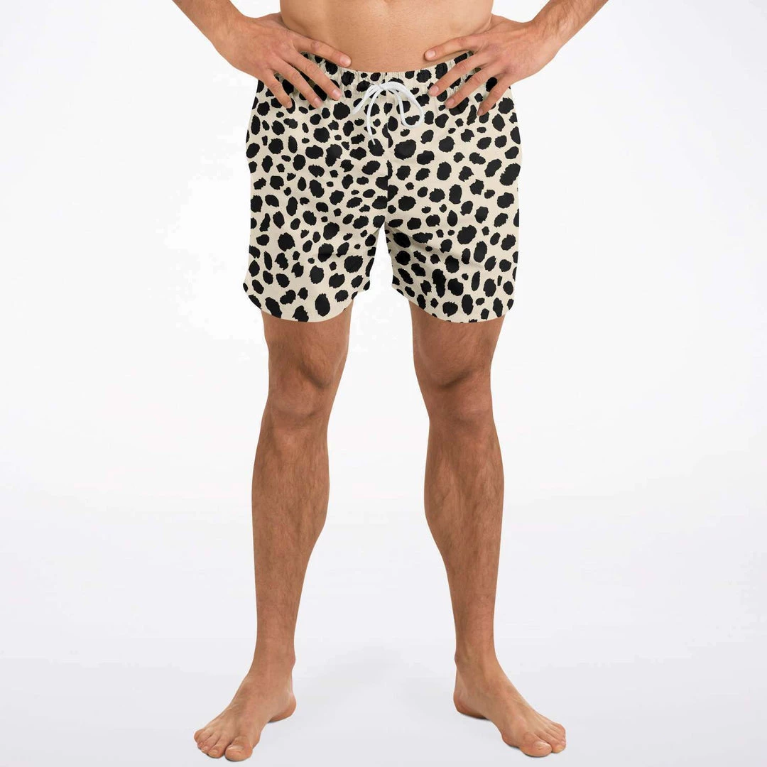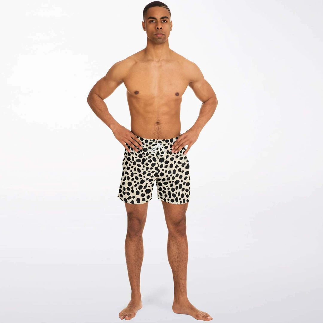 Featuring an all over Cheetah print these shorter-length swim trunks hit above the knee for a contemporary look. They come in a fast-dry fabric, and feature a drawstring waistband, mesh basket lining and mesh-lined side pockets.