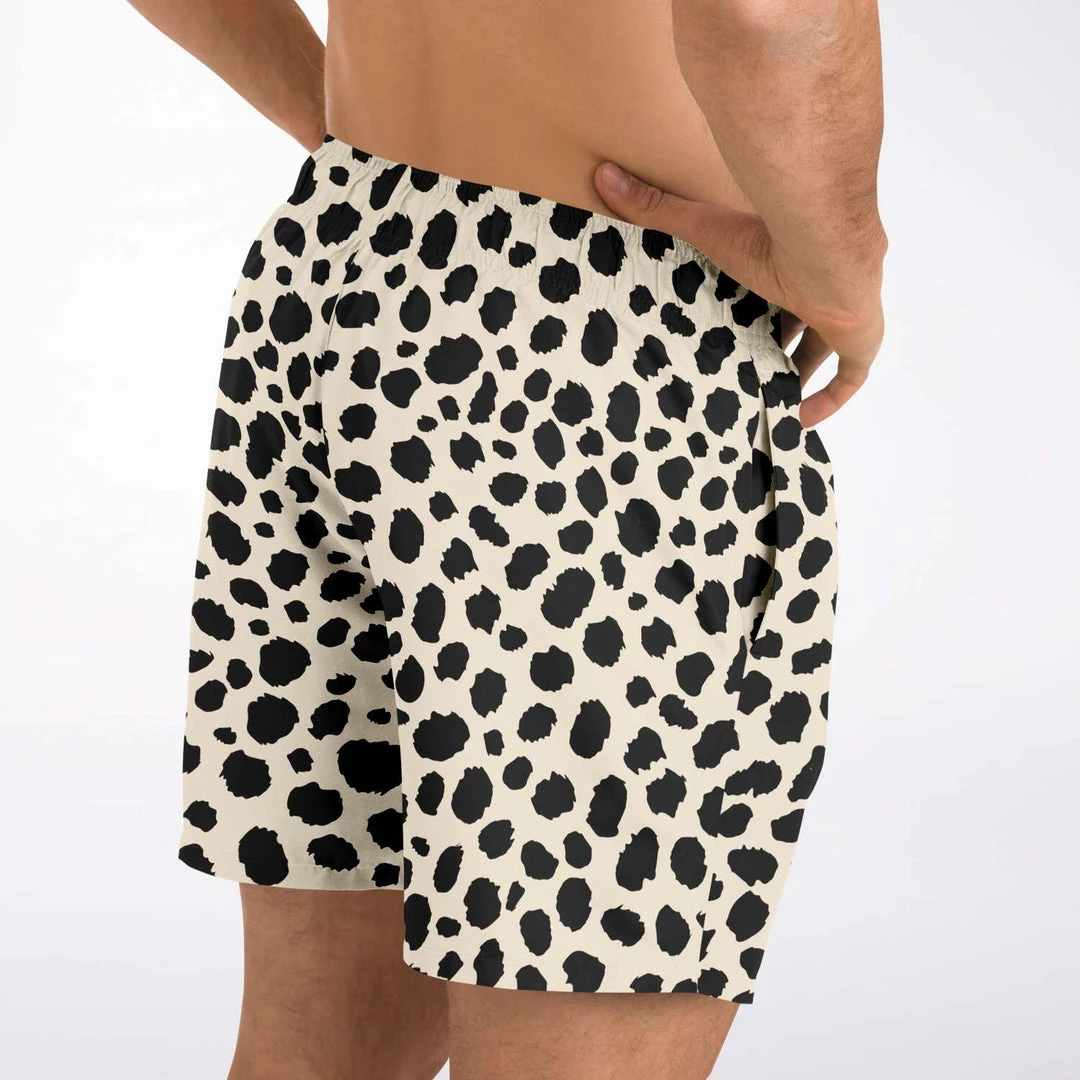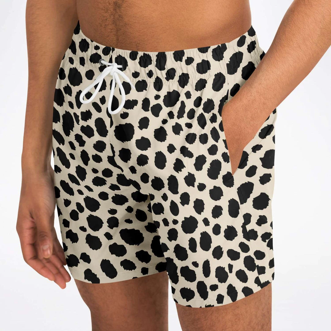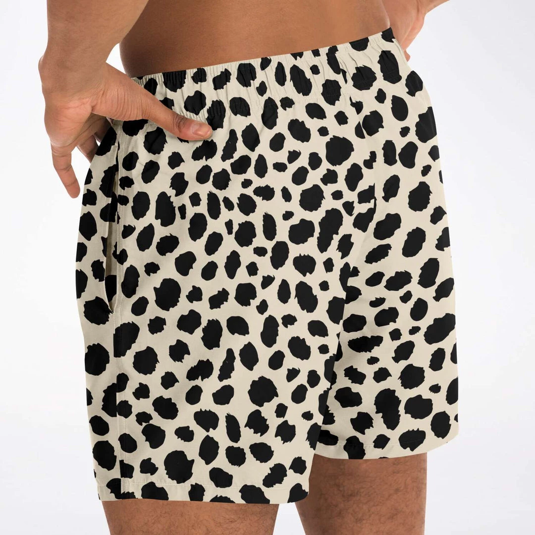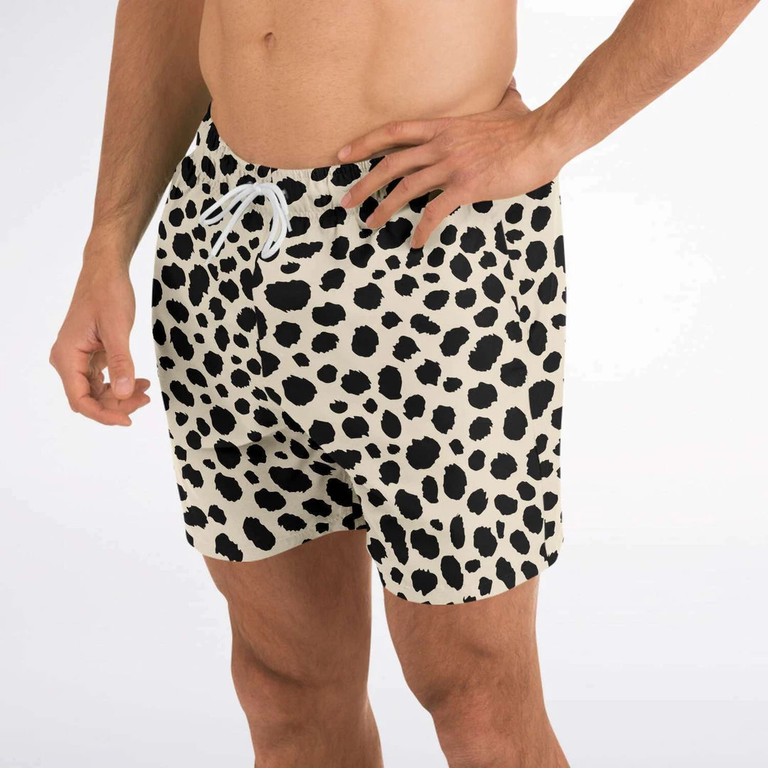 Featuring an all over Cheetah print these shorter-length swim trunks hit above the knee for a contemporary look. They come in a fast-dry fabric, and feature a drawstring waistband, mesh basket lining and mesh-lined side pockets.