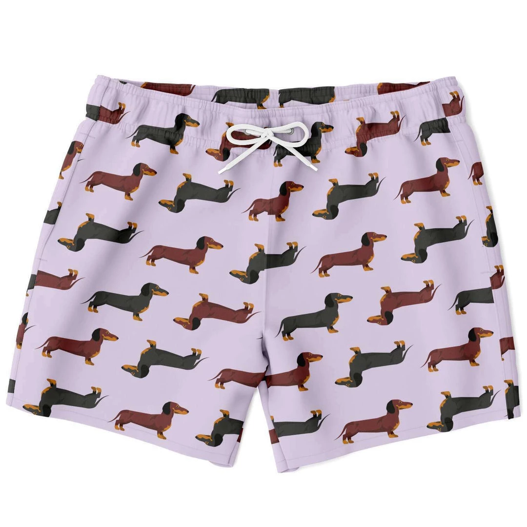 Take your best friend on vacation in our Dachshund Lovers Swim Shorts. These short length fast-drying shorts also feature a drawstring waistband, mesh basket lining and mesh-lined side pockets.