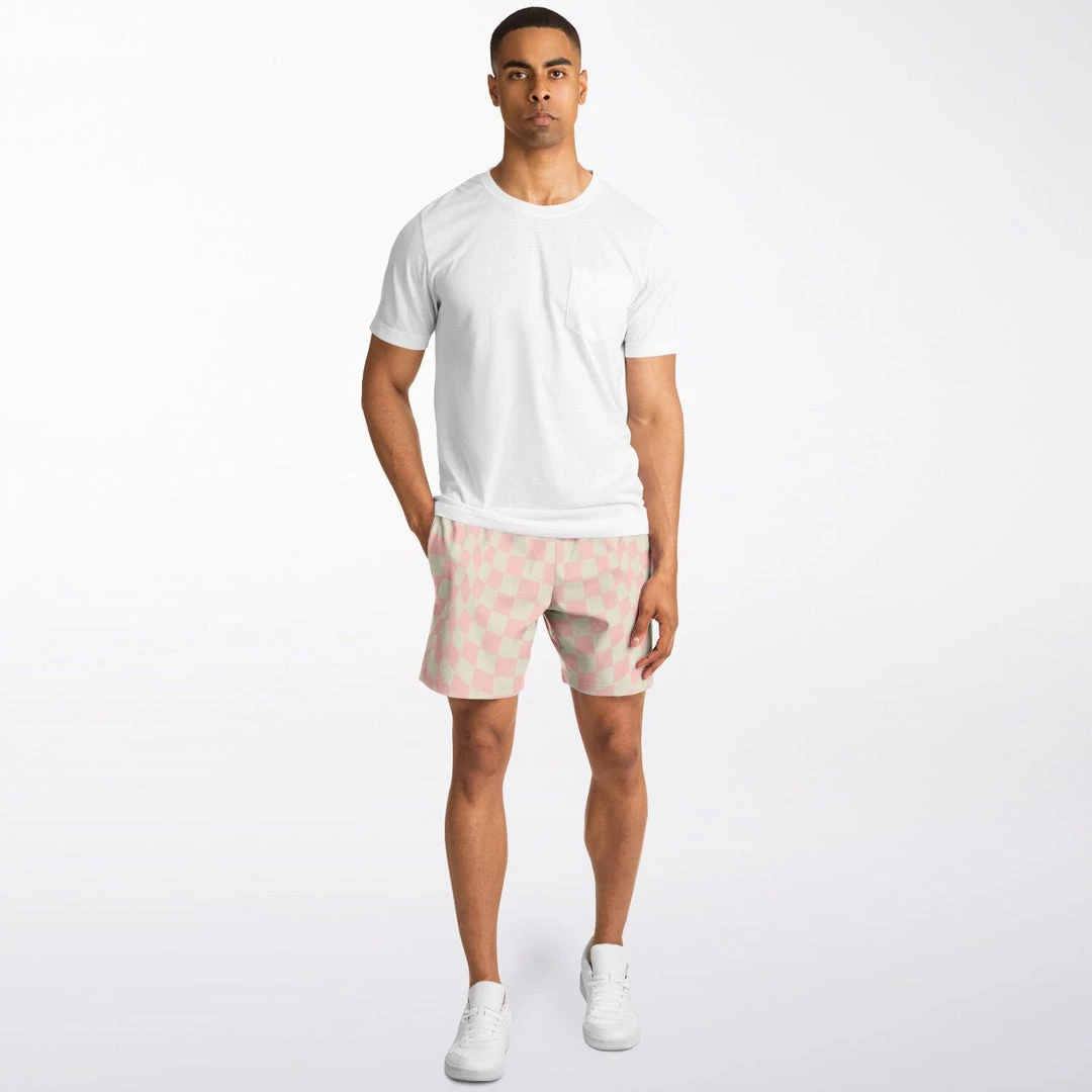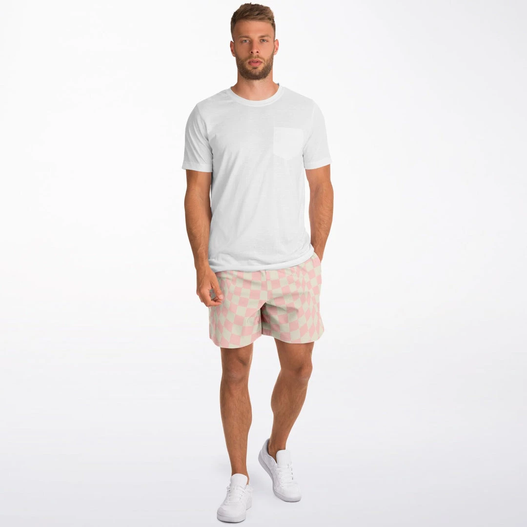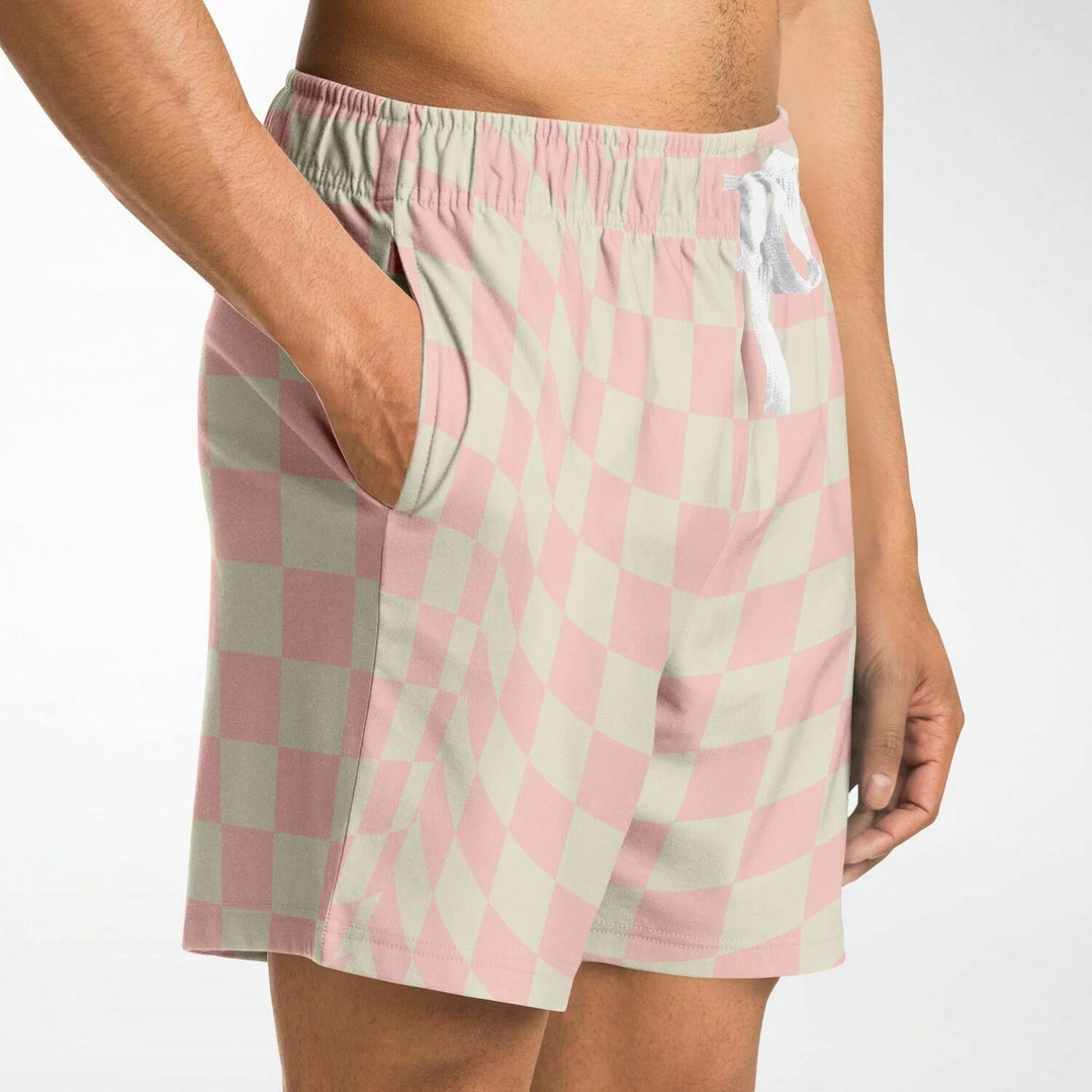 Our Pink Vanilla Check Fleece Shorts provide a fashionable lift to your outfit. The all over abstract checker pattern in soft pink and vanilla cream is modern and contemporary.