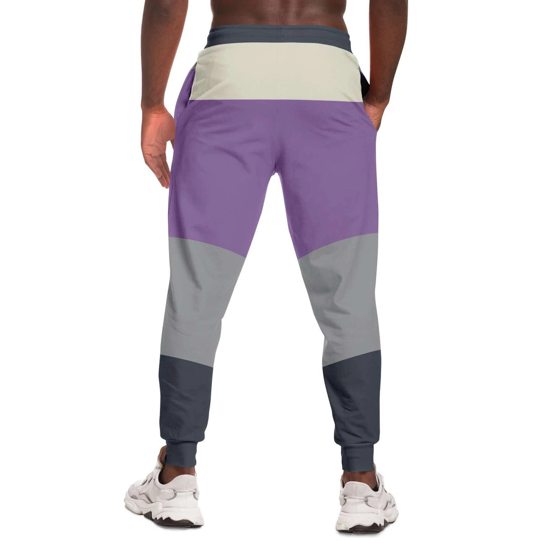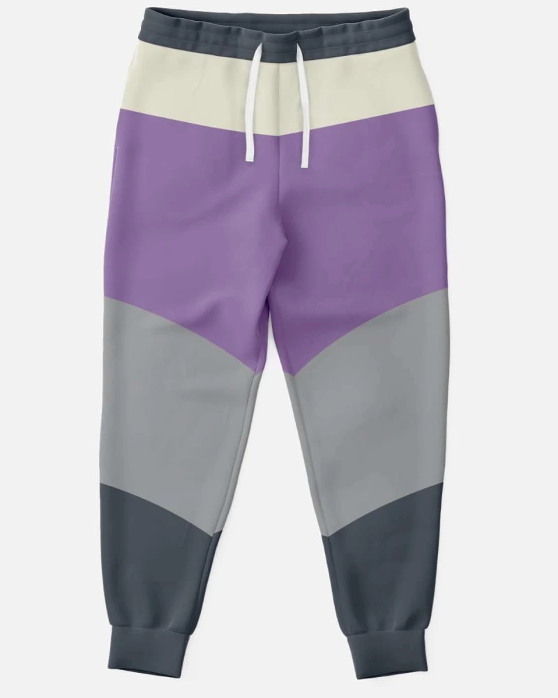 Our Color Block Unisex joggers in Purple, Charcoal and Gray are minimalist and contemporary. They pair perfectly with a tee, hoodie, sweatshirt or jacket to provide a unique look. These unisex joggers feature a soft and durable fabric that has a cotton feel, whilst the brushed fleece on the inside adds warmth and comfort.