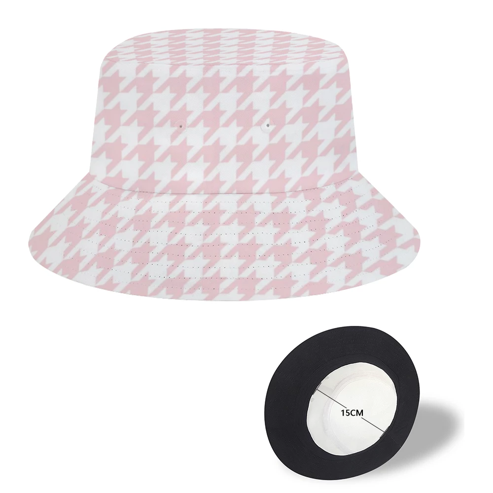 Take your summer outfit to a new level in our classic Pale Pink Houndstooth pattern Bucket Hat.