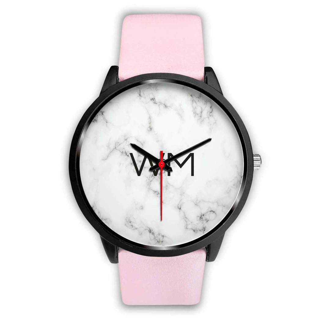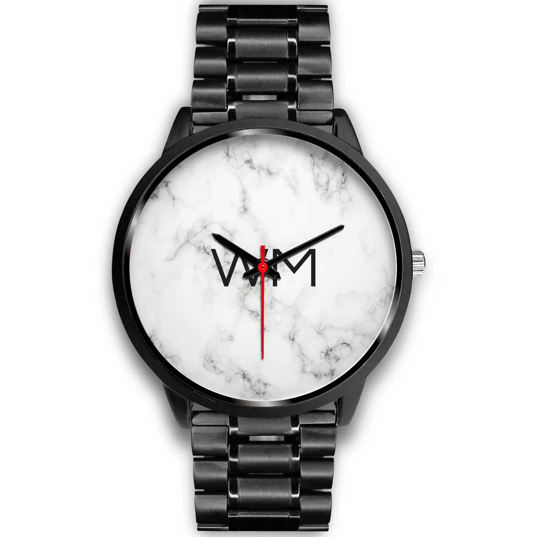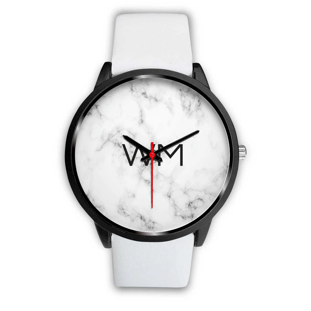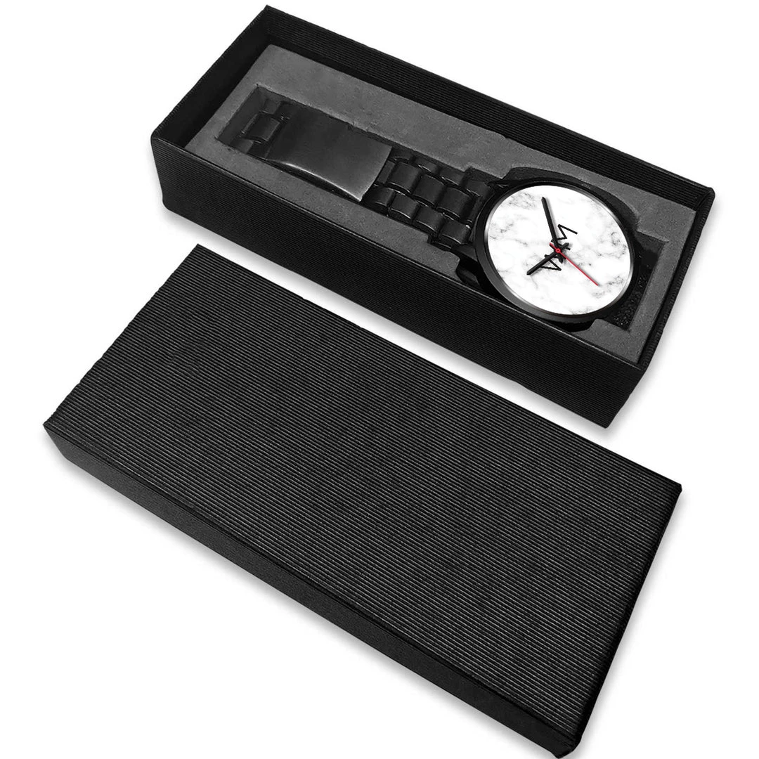 Stamp your initials on our Manchester Black watch to create a one of a kind statement piece. Contemporary in design, the Manchester features a white marble face with your stylised typographic initials. Our Personalized Watch designs are made to the highest of standards with a strengthened alloy body, inner Japanese movement and interchangeable solid bands. Choose from 100% genuine leather or stainless steel bands to match your style.