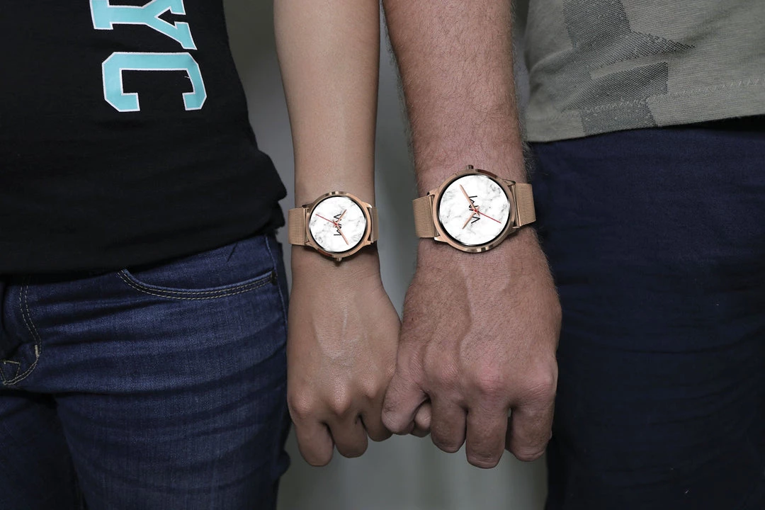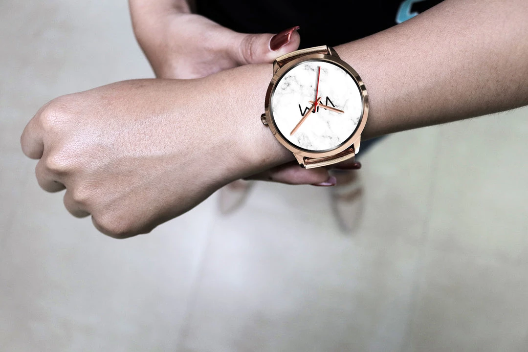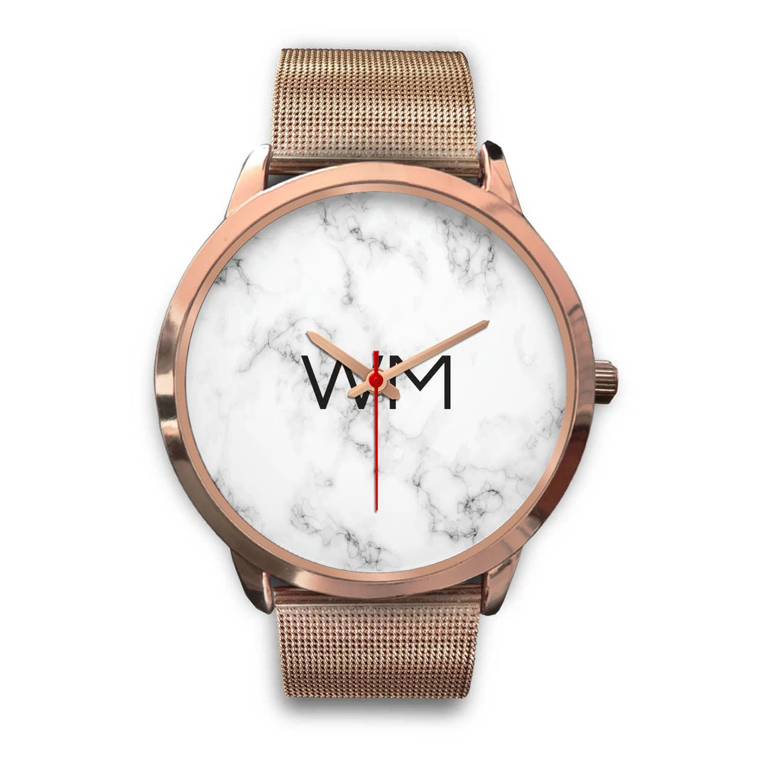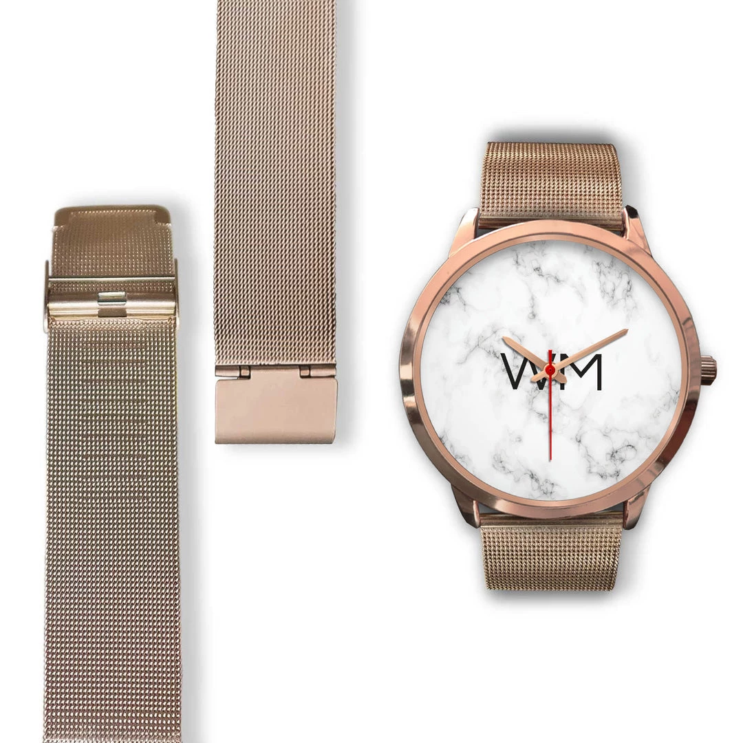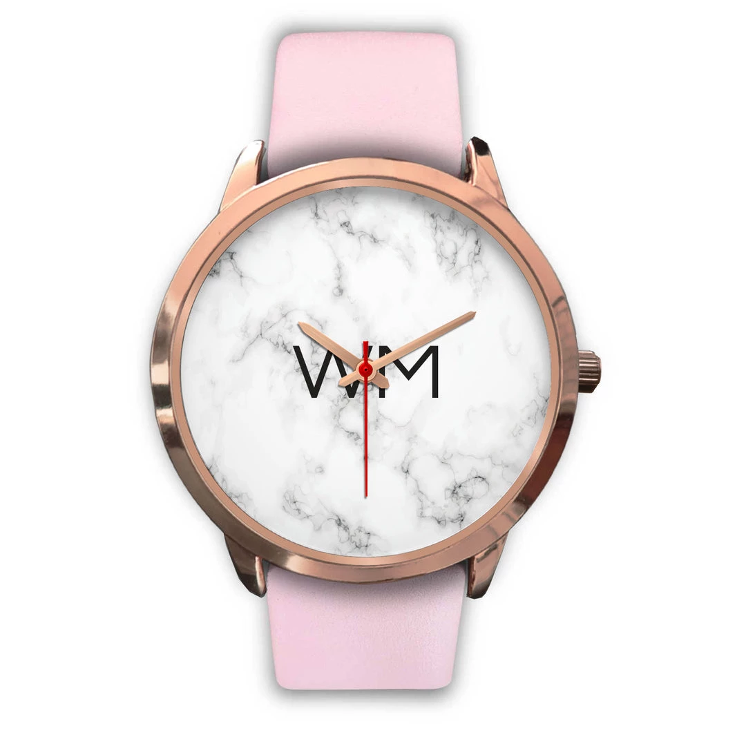 Stamp your initials on our Paris Rose Gold watch to create a one of a kind statement piece. Contemporary in design, the Paris features a white marble face with your stylised typographic initials. Our Personalized Watch designs are made to the highest of standards with a strengthened alloy body, inner Japanese movement and interchangeable solid bands. Choose from 100% genuine leather or stainless steel bands to match your style.