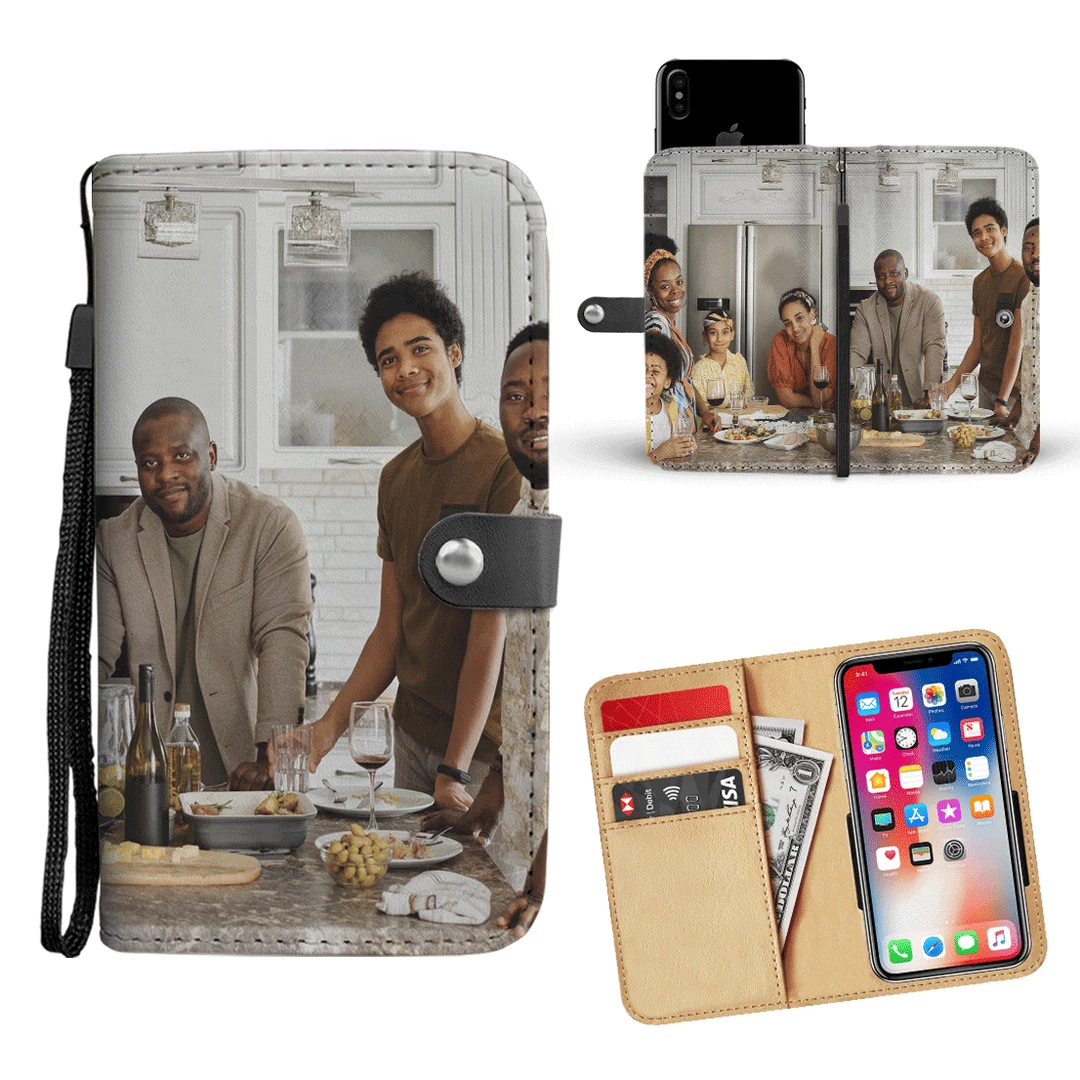 Customize this handy Phone Wallet / Flip Case by adding one of your own photos! Show off your children, pets, grandchildren, loved one, friends or holiday photos – the choice is yours.Â