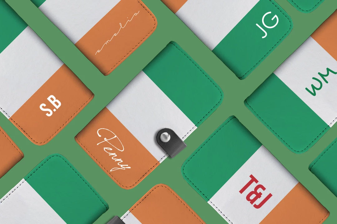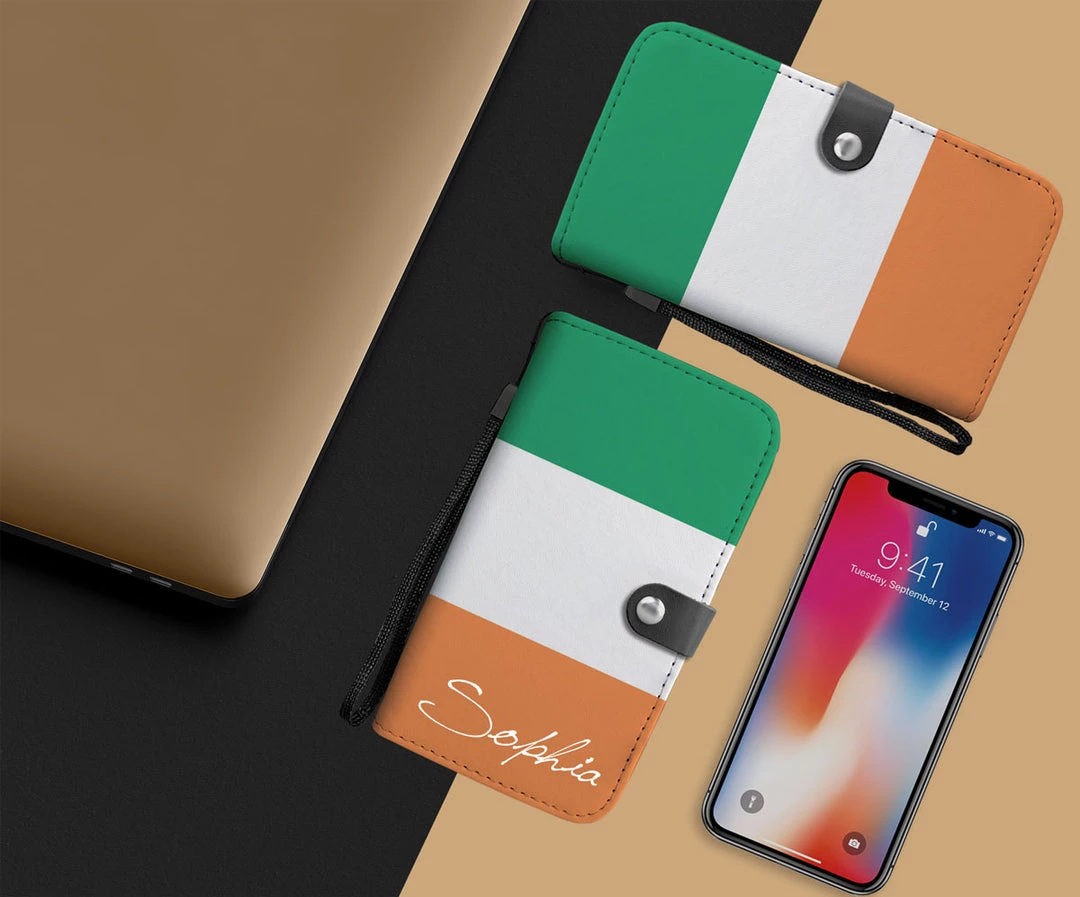 Personalize our Irish Flag Phone Wallet Case with your own Initials, Name, Business Name or Custom Text. The choice is yours.