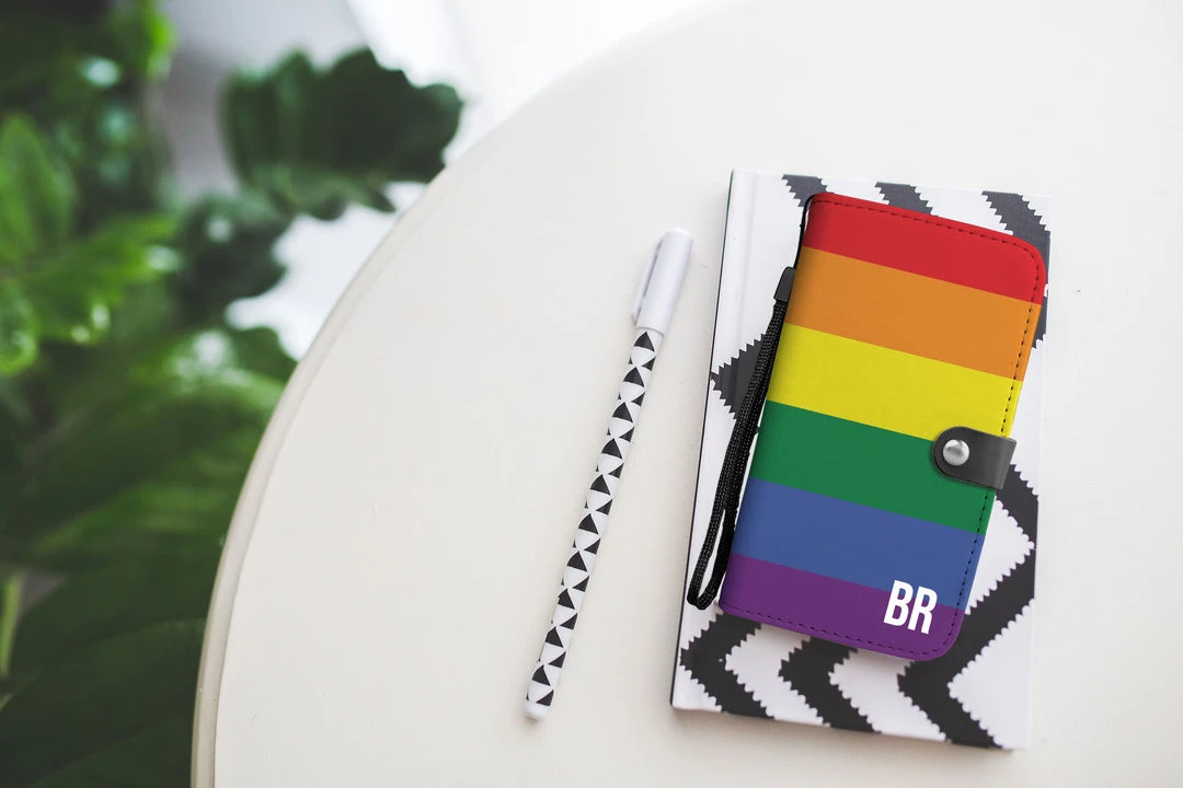 Our Personalized LGBT Flag Phone Wallet Case can be customized with your own Name, Initials, Business Name or Text in various Font’s and Colors.Â